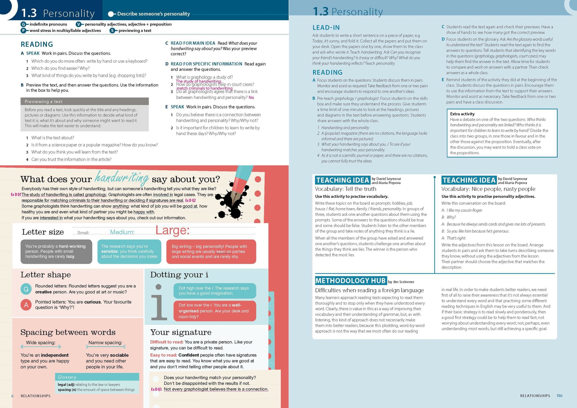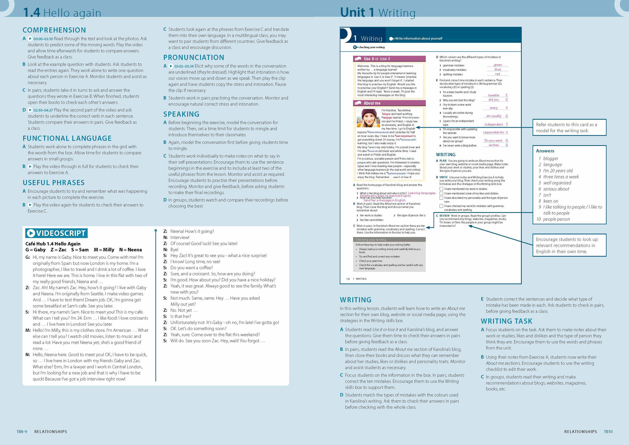 Книга для учителя включает все страницы учебника, пошаговые рекомендации по ведению уроков, методические статьи из книги Learning Teaching (by Jim Scrivener), советы и идеи из книги 700 Classroom Activities (by David Seymour & Maria Popova).