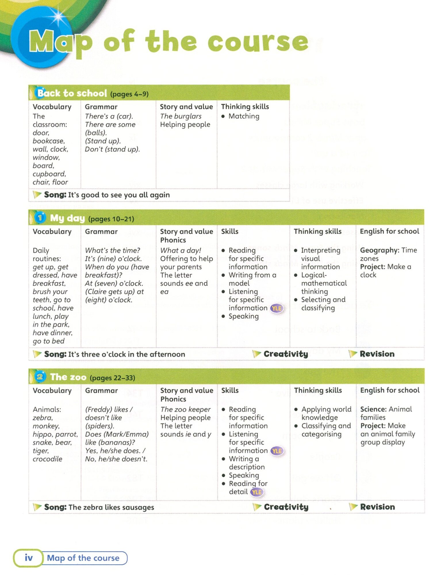 Полноцветная Книга для учителя совмещена со страницами из учебника и включает рекомендации по ведению урока, а также комментарии по работе с Рабочей тетрадью. Раздел "Aims" содержит описание подробных целей урока, список новых и усвоенных ранее лексических единиц и грамматических структур, перечень с необходимыми и дополнительными материалами к уроку, а также список языковых компетенций, которыми учащиеся овладеют в конце урока. Издание содержит ответы к упражнениям, тексты аудиозаписей и дополнительные идеи для разминки и завершения урока.