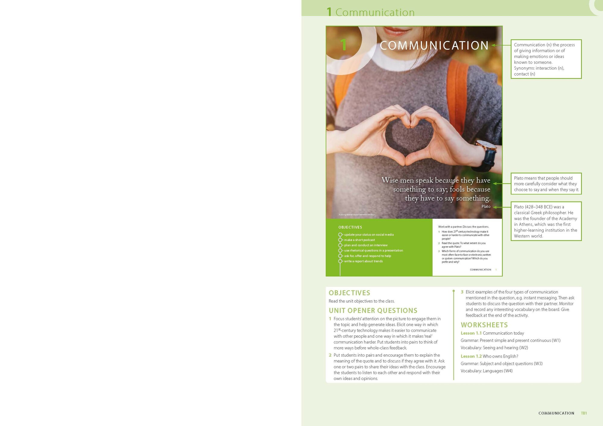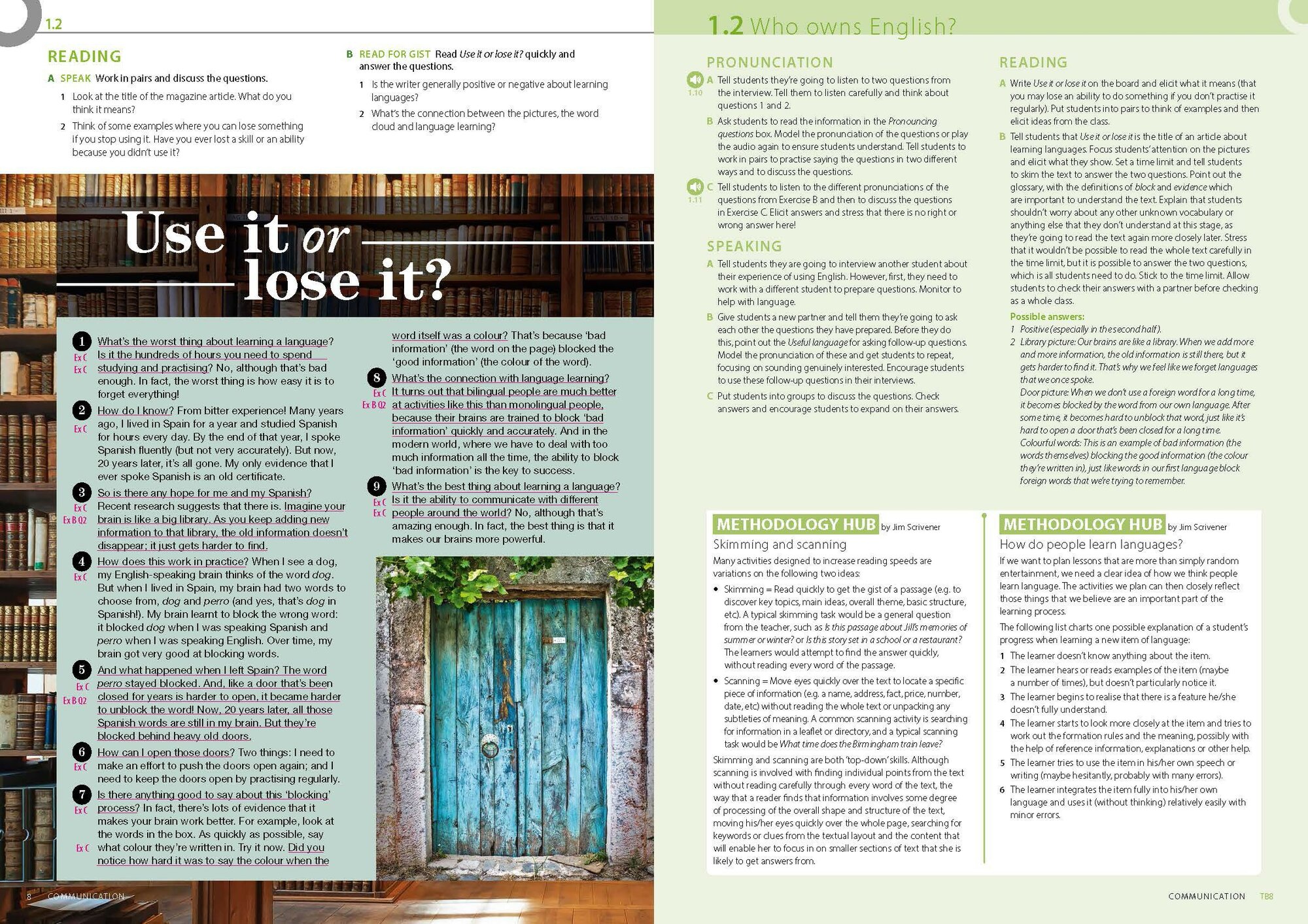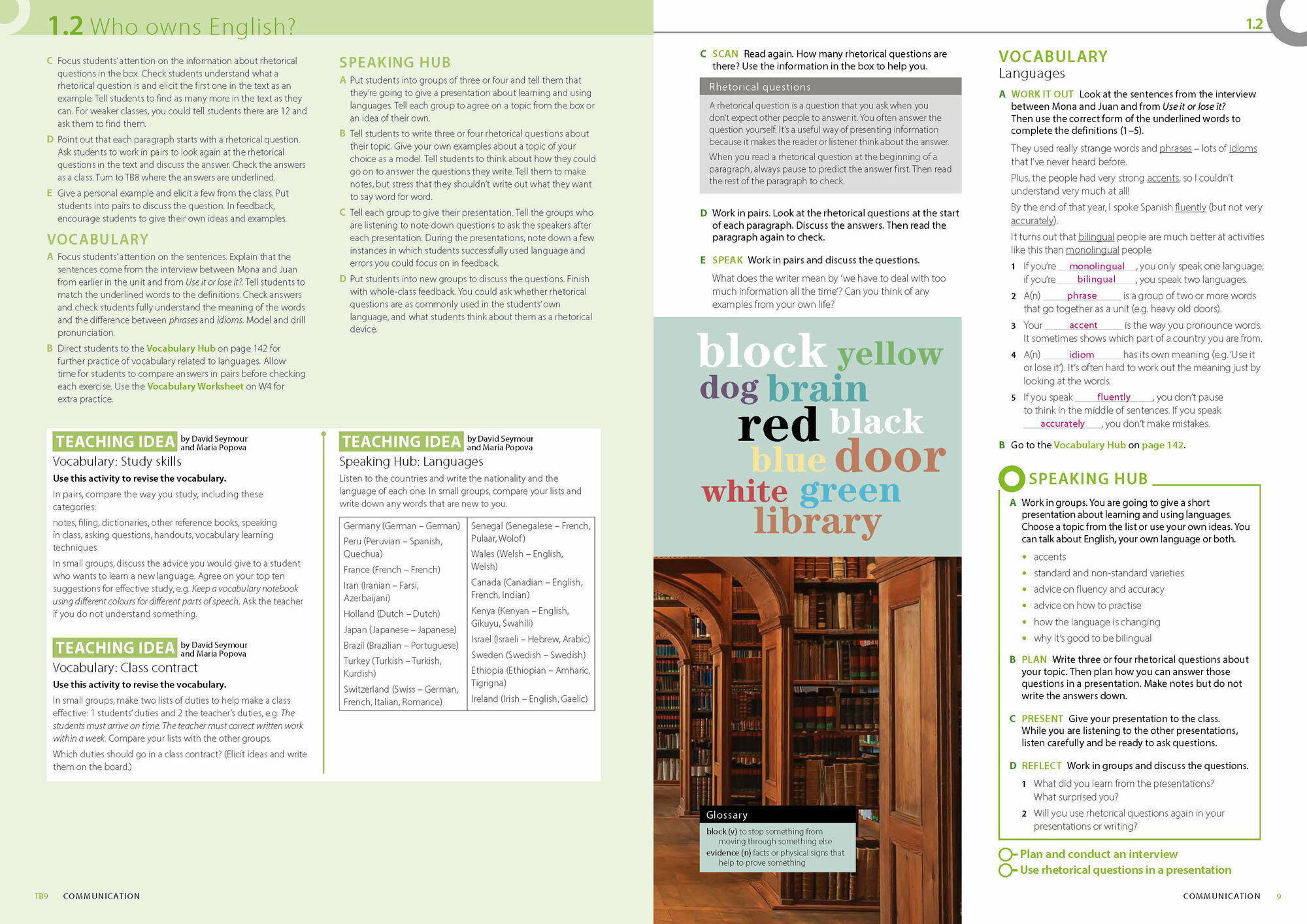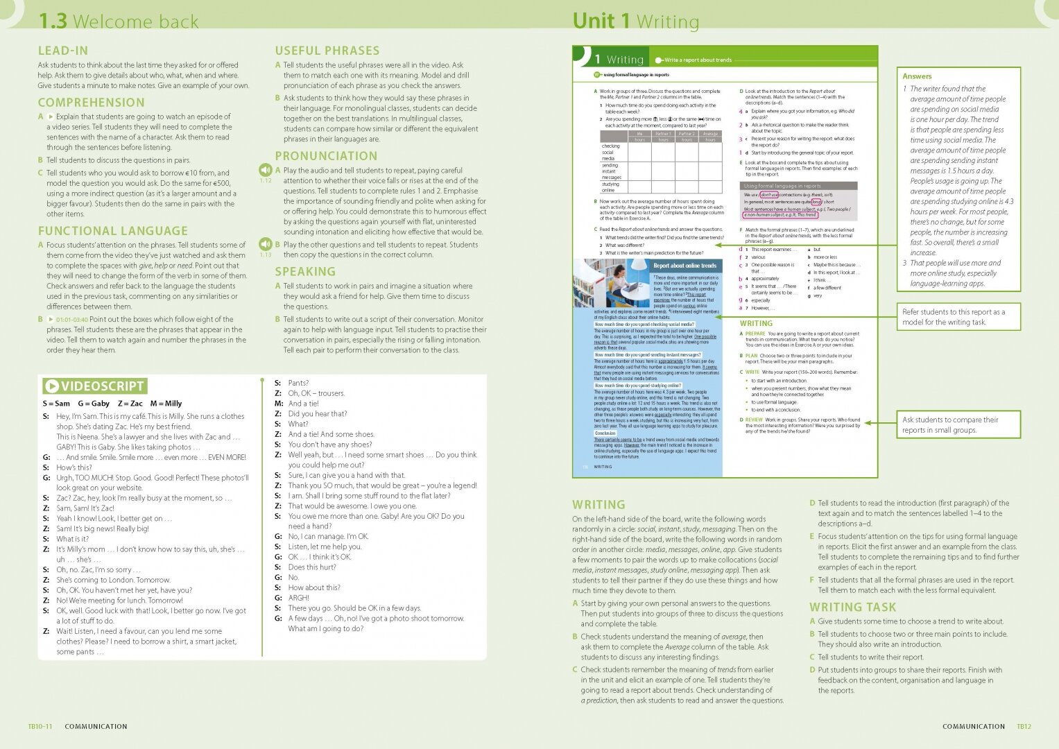 The Teacher's Book is interleaved with the pages of the Student's Book to make finding information easier. The Teacher's App provides everything in one place including; classroom presentation tools, video audio, Test Generator, video resources, photocopiables, and access to the content of the Student's App to easily set homework.