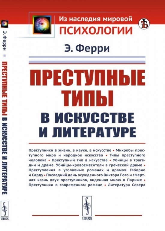 Вниманию читателей предлагается книга итальянского психолога-криминалиста и политического деятеля Энрико Ферри (1856-1929), в которой исследуются вопросы о роли искусства в понимании сущности преступления, о формировании отношения к преступникам и связанной с этим общественной культурой. Автор стремится показать, как искусство пробуждает общественное самосознание, развивая отношение к преступникам как к несчастным людям, обращая внимание на их психологию и антропологию. Во вступительной части книги рассматривается проблема преступности в жизни, науке и искусстве, в основной части представлена классификация преступников, которых Э. Ферри делит на "прирожденных", "сумасшедших", "случайных", преступников "по приобретенной привычке" и преступников "в порыве страсти". Кроме того, в работе поднимаются вопросы об особенностях преступных типов в искусстве, убийцах в трагедии и драме, преступлениях в уголовных романах и т. д. В заключение автор рассматривает типы честных людей в искусстве. Книга, написанная более ста лет назад (первое русское издание вышло в 1908 г.), будет полезна прежде всего историкам психологии и криминалистам, а также литературоведам, культурологам, философам и всем заинтересованным читателям.