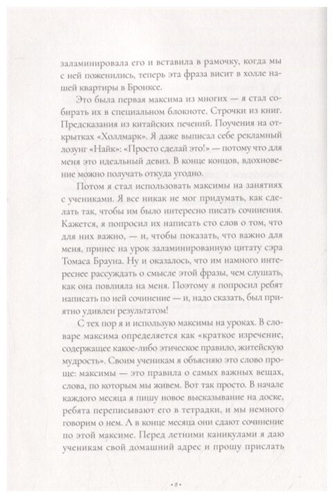 Максимы мистера Брауна, любимого учителя Ави и его друзей из «Чуда», помогали пятиклассникам задумываться о том, что для них самое важное, преодолевать трудности, видеть хорошее и радоваться ему. Теперь же мистер Браун делится своими максимами со всеми нами! В этой книге собрано лучшее из его коллекции: изречения знаменитых людей, строчки из книг, предсказания из китайских печений – по одной на каждый из 365 дней года.
