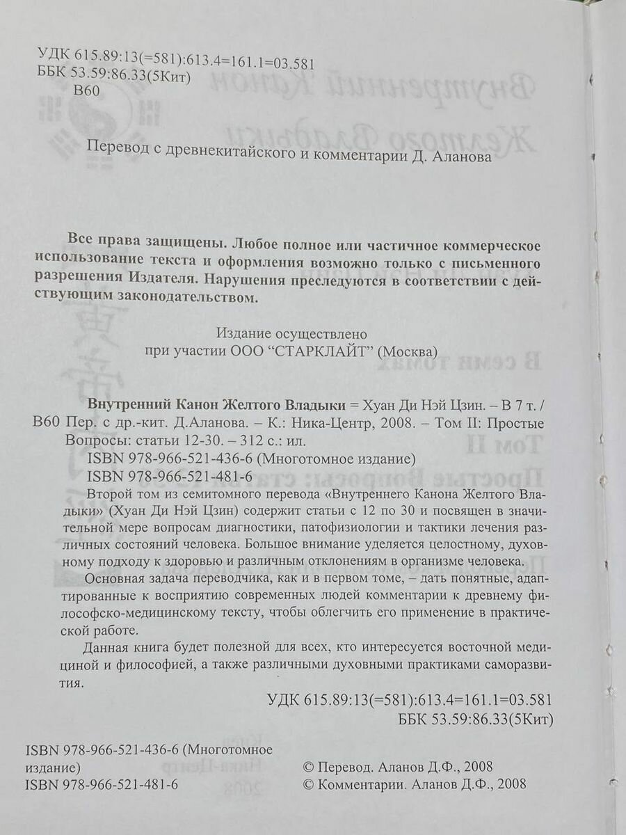 В нем большое внимание уделяется целостному, духовному подходу к здоровью и различным отклонениям в организме человека. Основная задача переводчика, как и в первом томе, - дать понятные, адаптированные к восприятию современных людей комментарии к древнему философско-медицинскому тексту, чтобы облегчить его применение в практической работе.