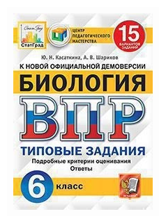 Биология Всероссийская проверочная работа 6 класс Типовые задания 15 вариантов (Касаткина Юлия Николаевна, Шариков Александр Викторович); Экзамен, 2019