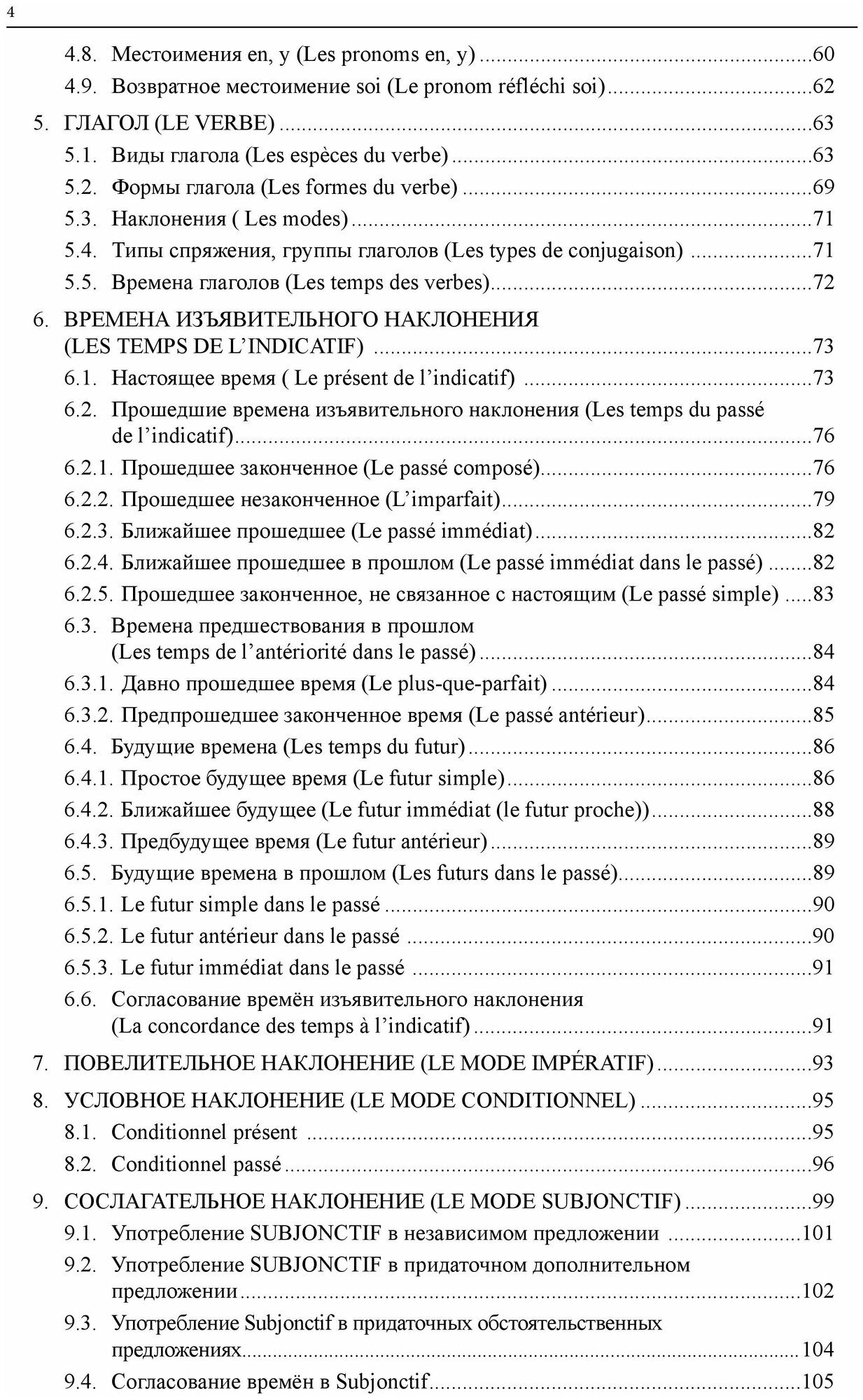 Издание делится на две части: теоретическую (учебник) и практическую (практикум). В теоретической части подробно представлен материал по грамматике французского языка. Была поставлена задача дать возможность изучающим французский язык найти ответына вопросы, возникающие в процессе изучения языка. Для этого по наиболее труднымтемам даётся подробное объяснение, закрепляемое многочисленными примерами. Данное издание дополнено разделом «Синтаксис», который отсутствовал в первом издании. Практическая часть (практикум) состоит из восьми уроков. Каждый урок состоит из нескольких разделов. Раздел «Грамматика» включает 4 темы с большим количеством упражнений. Затем следует раздел «Основной текст». Каждый из текстов восьми уроков посвящён определённой теме. Выбранные темы связаны с реалиями французской жизни, традициями и культурой Франции. Каждый текст сопровождается подробным словарем и послетекстовыми упражнениями. Имеется раздел лексико-грамматических комментариев, где разъясняется значение и употребление отдельных слов, фразеологических сочетаний и оборотов. Помимо объяснений, этот раздел содержит упражнения на закрепление материала. В конце каждого урока приводится дополнительный текст, продолжающий тему основного текста. В конце практикума имеются 10 грамматических тестов для самоконтроля (с ключами), а также приложение, состоящее из 10 текстов с послетекстовыми заданиями, целью которых является развитие навыков устной речи. По международной классификации уровня знаний данный учебник соответствует уровням В1, В2.