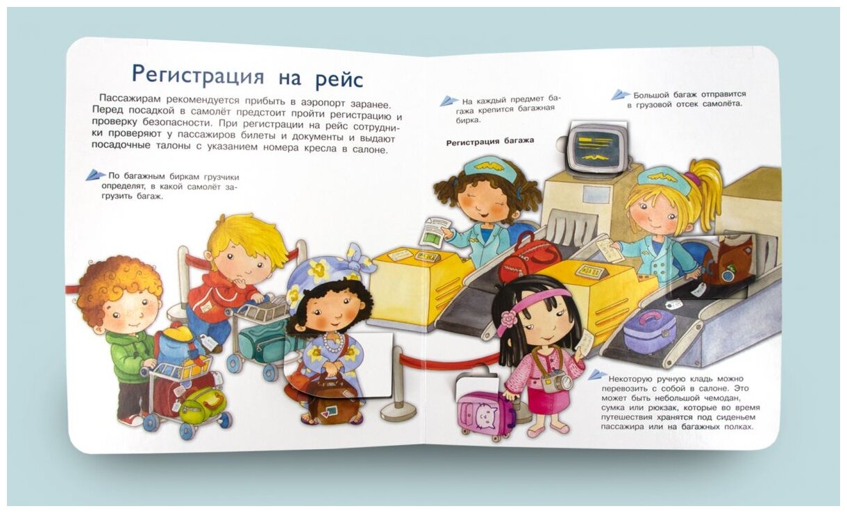 Иллюстрированная энциклопедия «Что? Почему? Зачем? Аэропорт» предназначена для развивающих занятий взрослых с детьми дошкольного возраста. Она подарит вашему ребёнку возможность в игровой и увлекательной форме узнать о том, что такое аэропорт. Яркая и привлекательная книга удобного для детских ручек формата напечатана на высококачественном ламинированном картоне повышенной прочности с закругленными краями страниц. На каждом книжном развороте внимание любознательного малыша привлекут красочные иллюстрации и волшебные окошки с интересными сюжетами о аэропорте. Ваш малыш будет с удовольствием рассматривать детально прорисованные картинки, открывая для себя новые интересные подробности, а многочисленные «секретные» окошки-клапаны с дополнительной информацией превратят чтение в увлекательную игру, разовьют внимание и любознательность. Издание станет замечательным подарком для юных «почемучек» и ценным пополнением домашней библиотеки.
