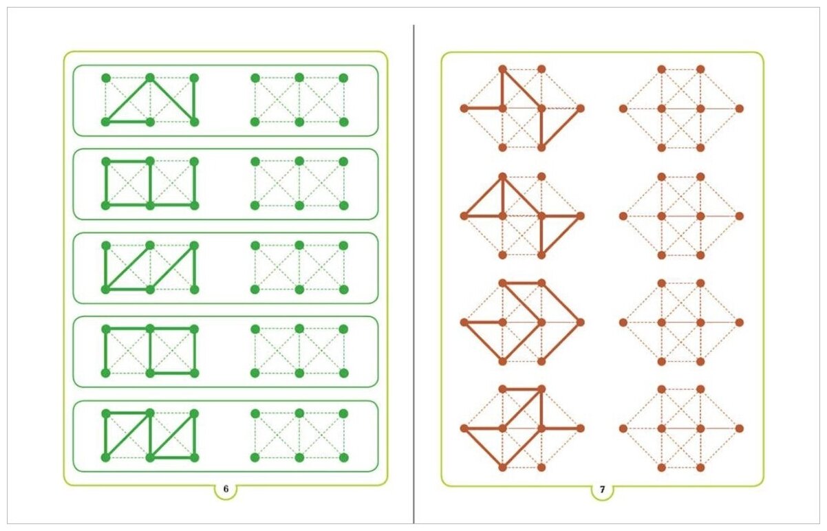 Подобран специальный комплекс коррекционно-развивающих заданий для улучшения концентрации внимания, памяти, мышления. В процессе выполнения таких упражнений (копирования заданных изображений и размещения их на поле карточки в указанном месте и т.п.) у ребёнка улучшаются зрительно-пространственная координация и пространственно-графическая ориентация, синхронизация работы глаз и рук, закрепляются навыки зрительного восприятия при дифференциации различных элементов, активизируется деятельность головного мозга в целом, что будет способствовать успешной подготовке старших дошкольников к обучению в школе.
