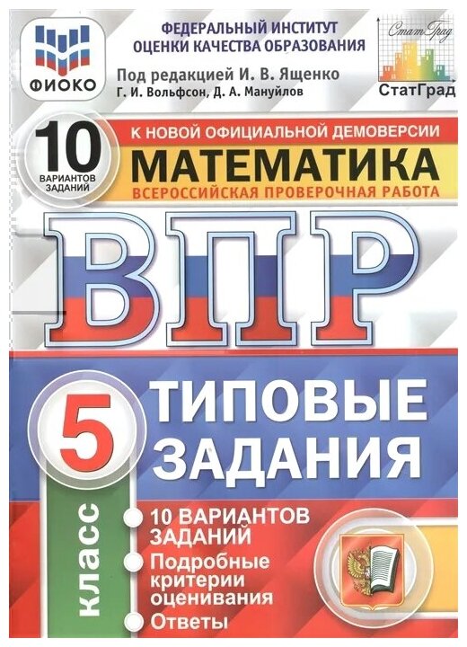 Всероссийская проверочная работа 10 вариантов заданий Математика 5 класс Типовые задания 10 вариантов заданий Ответы и критерии оценивания (Ященко Иван Валериевич, Вольфсон Георгий Игоревич, Мануйлов Дмитрий Анатольевич); Экзамен, 2021