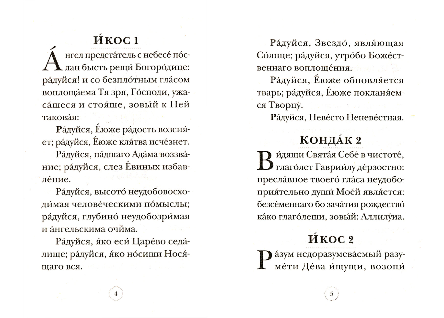 Богоро́дице Де́во, ра́дуйся, благода́тная Мари́е, Госпо́дь с Тобо́ю, Благослове́нна Ты в жена́х и благослове́н Плод чре́ва Твоего́, я́ко Спа́са родила́ еси́ душ на́ших.