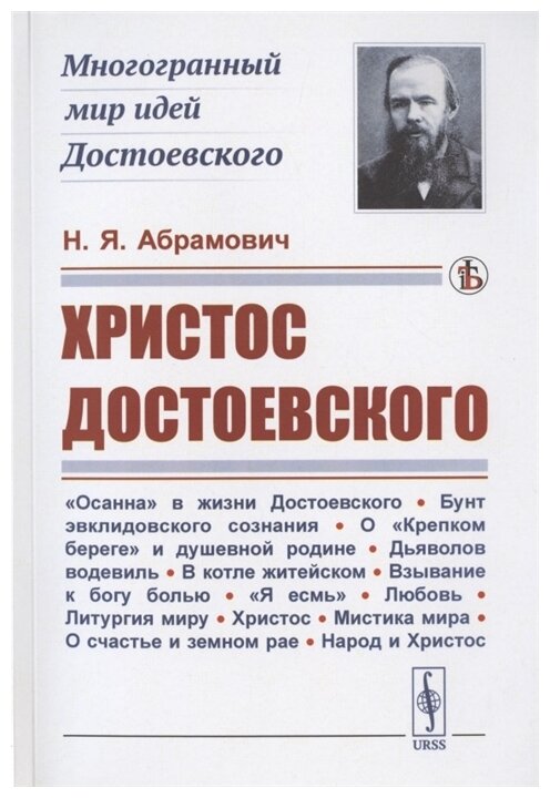 Вниманию читателей предлагается книга отечественного литературного критика, прозаика, поэта и публициста Н. Я. Абрамовича (1881-1922), в которой сделана попытка последовательно систематизировать религиозно-философские взгляды великого русского писателя Ф. М. Достоевского. Автор показывает, что центральной проблемой, к которой сводятся все философские идеи Достоевского, является проблема религии человеческой и религии Христовой. В работе проводится анализ различных проявлений облика Христа, который, по утверждению Н. Я. Абрамовича, находится в центре всего творчества Достоевского и присутствует практически во всех произведениях писателя.