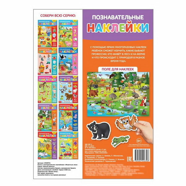 Познавательные наклейки Животные леса 55 многоразовых наклеек; Буква-ленд, 2020