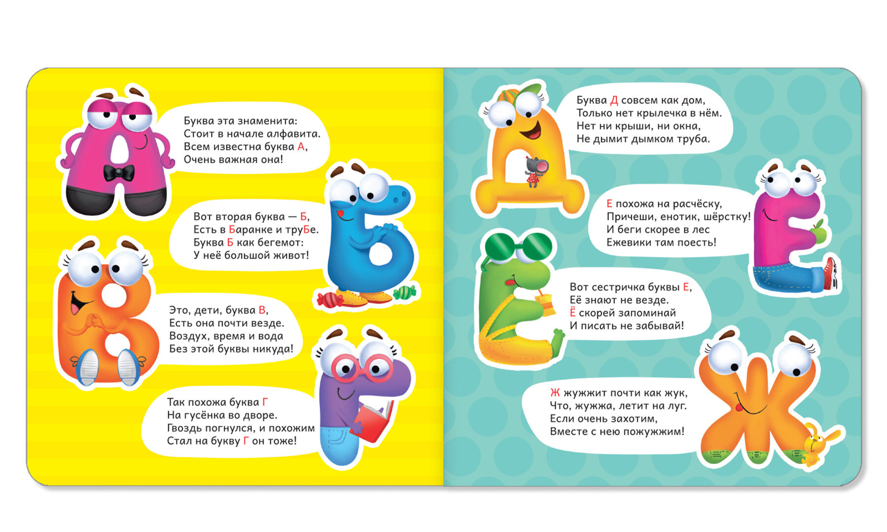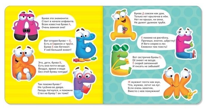 Азбука может быть интересной! На ярких страницах буквы словно оживают и превращаются в характерных персонажей. Малыш с удовольствием будет разглядывать необычные картинки, запомнит весёлые стихи и выучит алфавит.