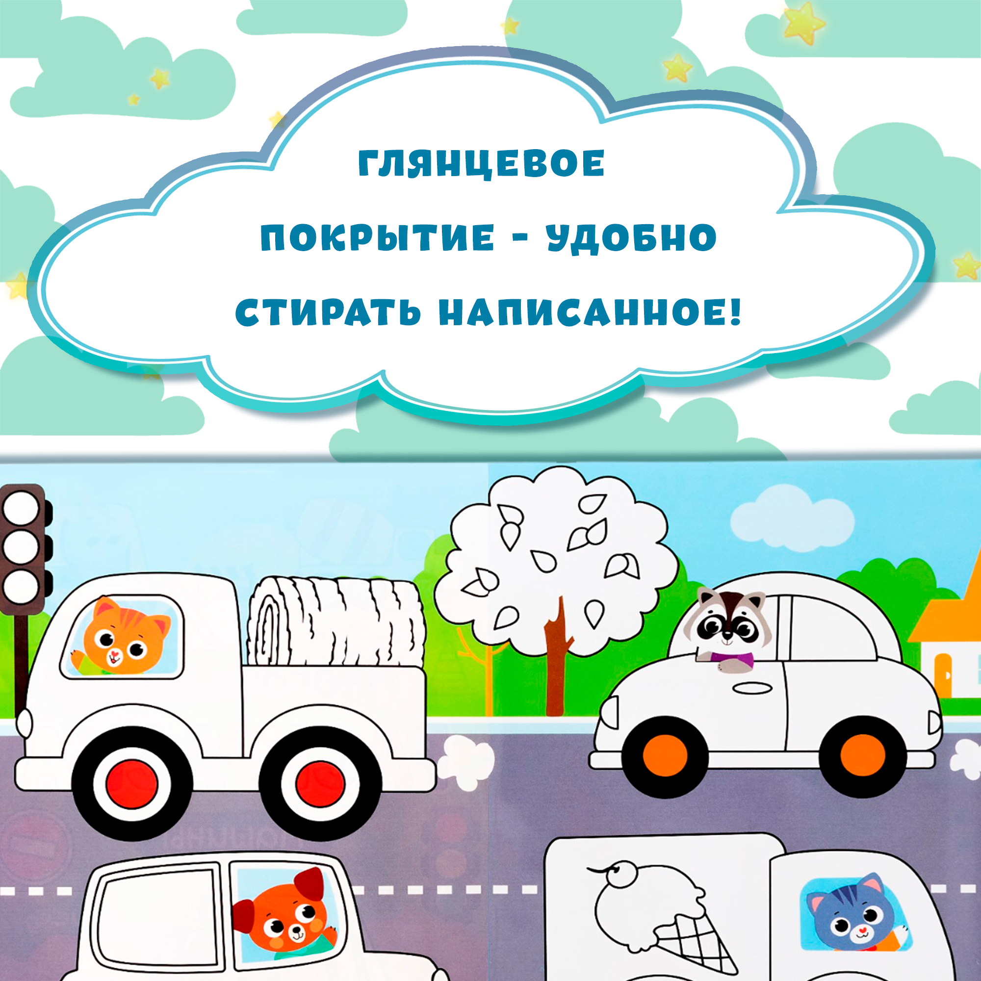 Эта замечательная раскраска с маркерами прекрасно подойдет для первых уроков вашего малыша, ведь следы фломастера легко стираются с волшебных страничек.