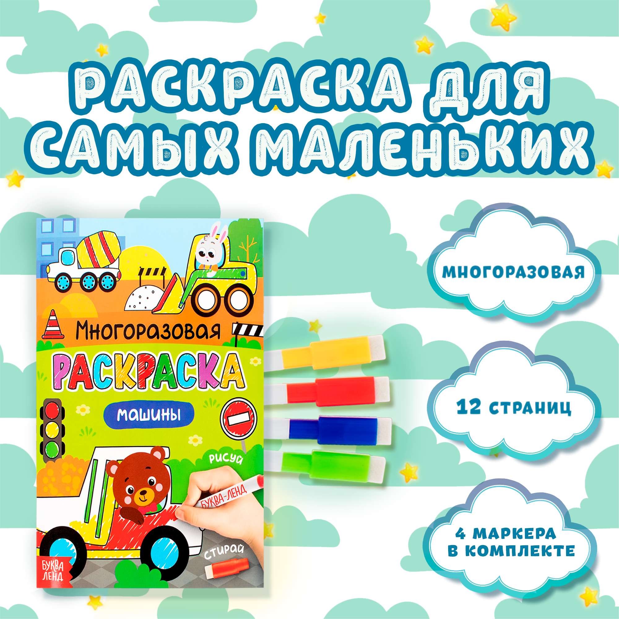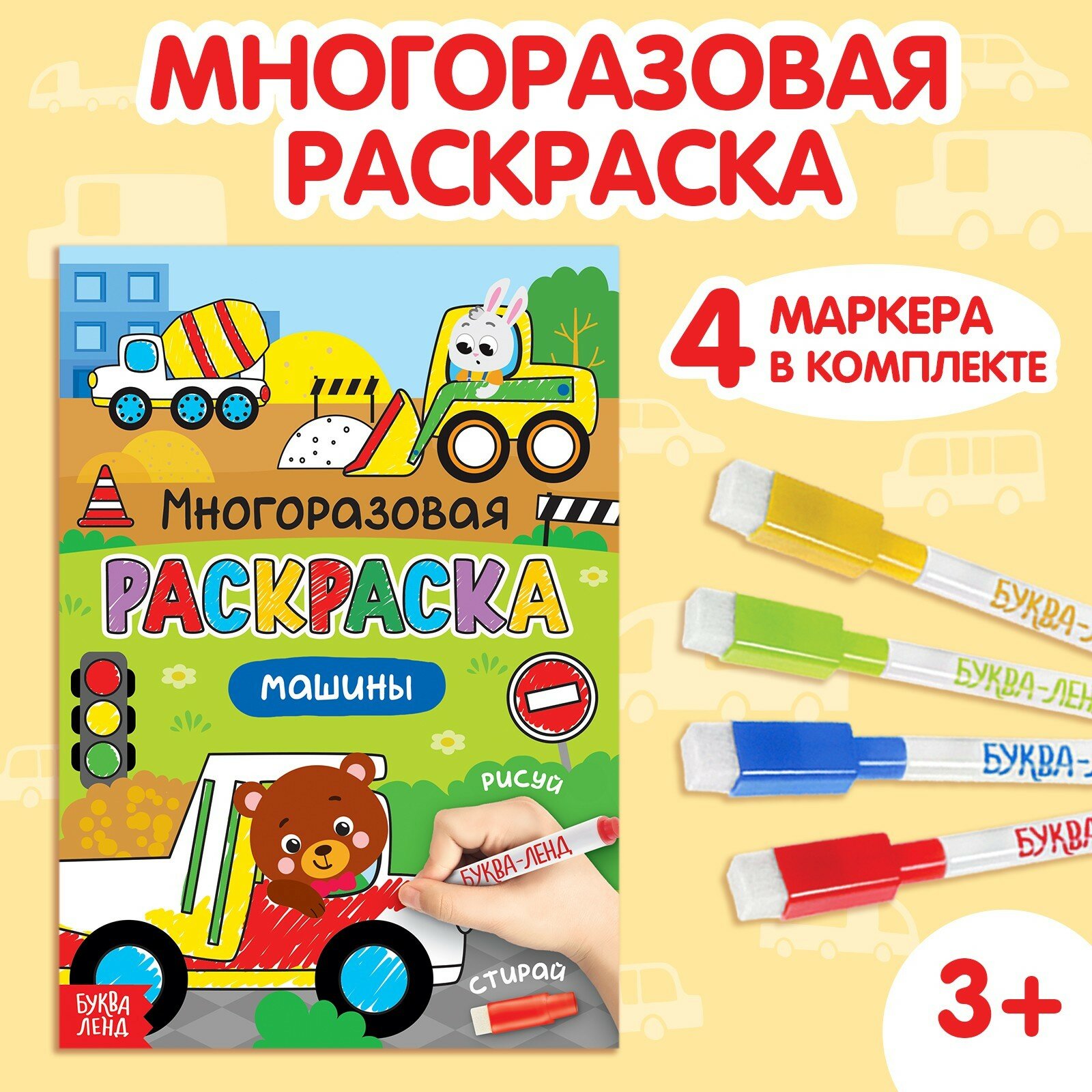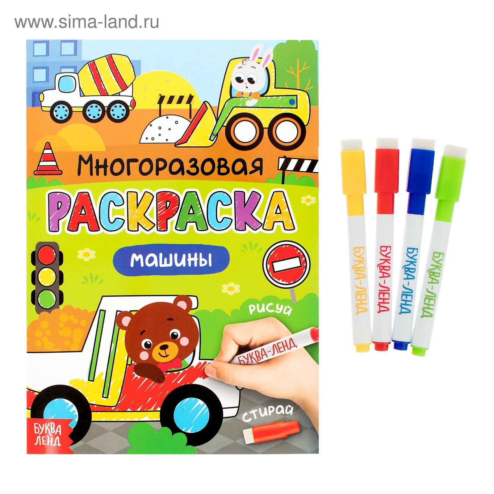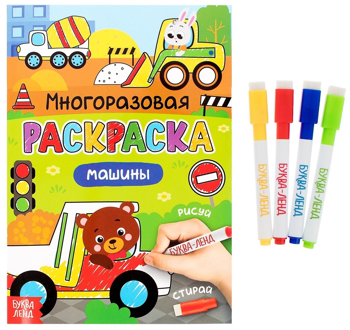 Многоразовая раскраска Машины с маркерами (Автор не указан); Буква-Ленд, 2020
