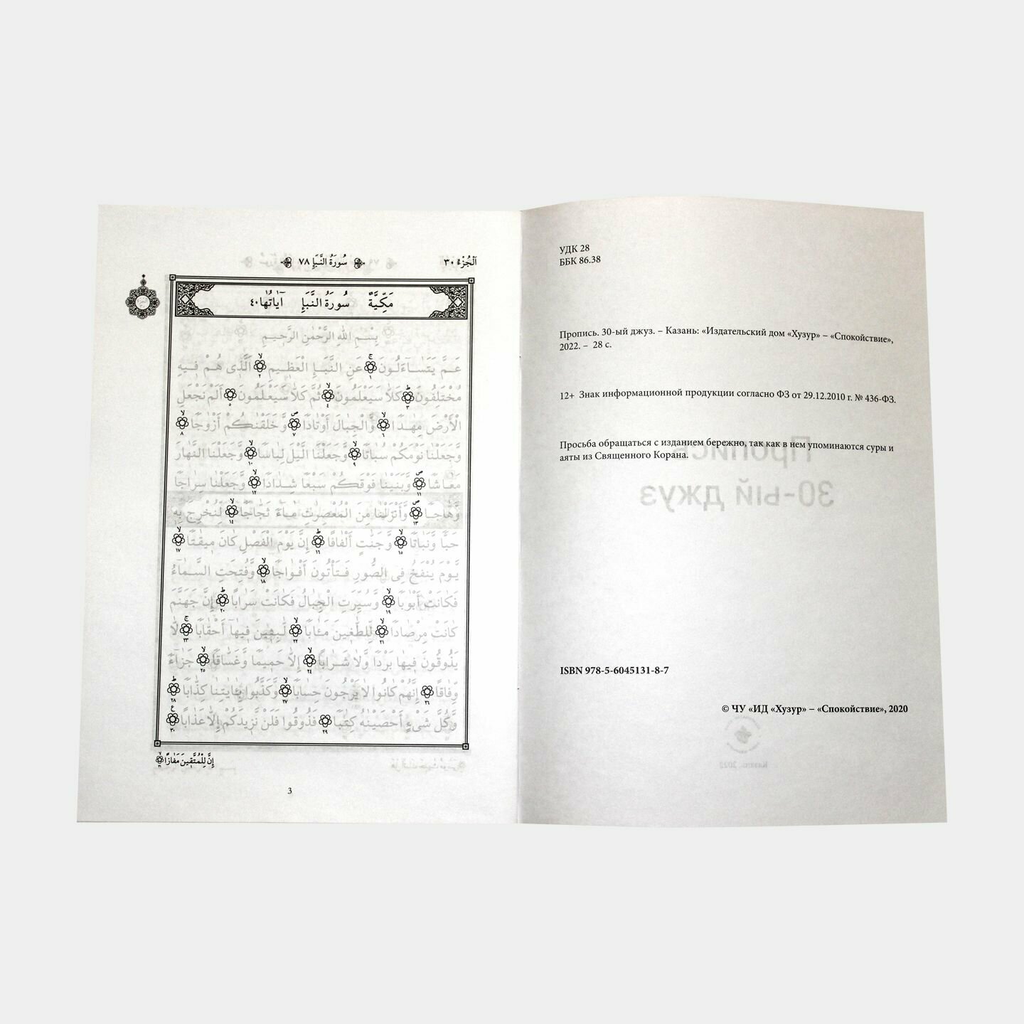 Данное издание послужит хорошей помощью в письменном заучивании суры 30-го джуза Куръана.