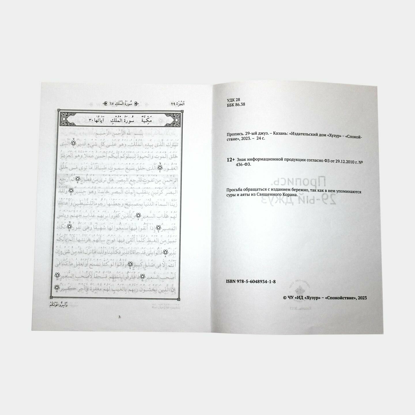 Книга: Пропись 30-ый джуз (без автора); Хузур, 2020