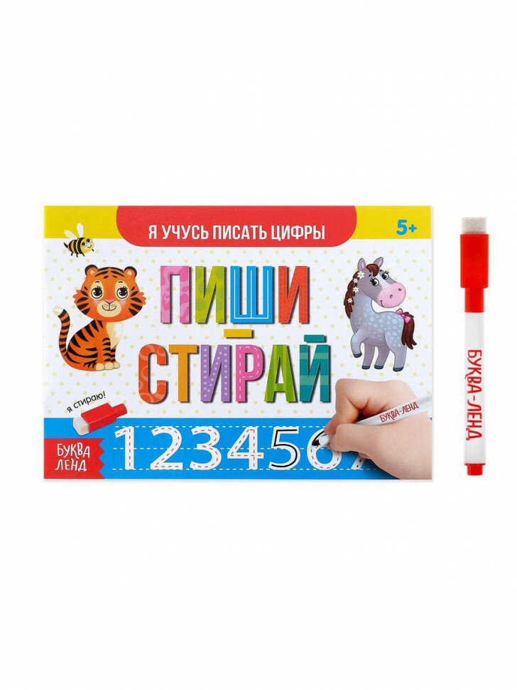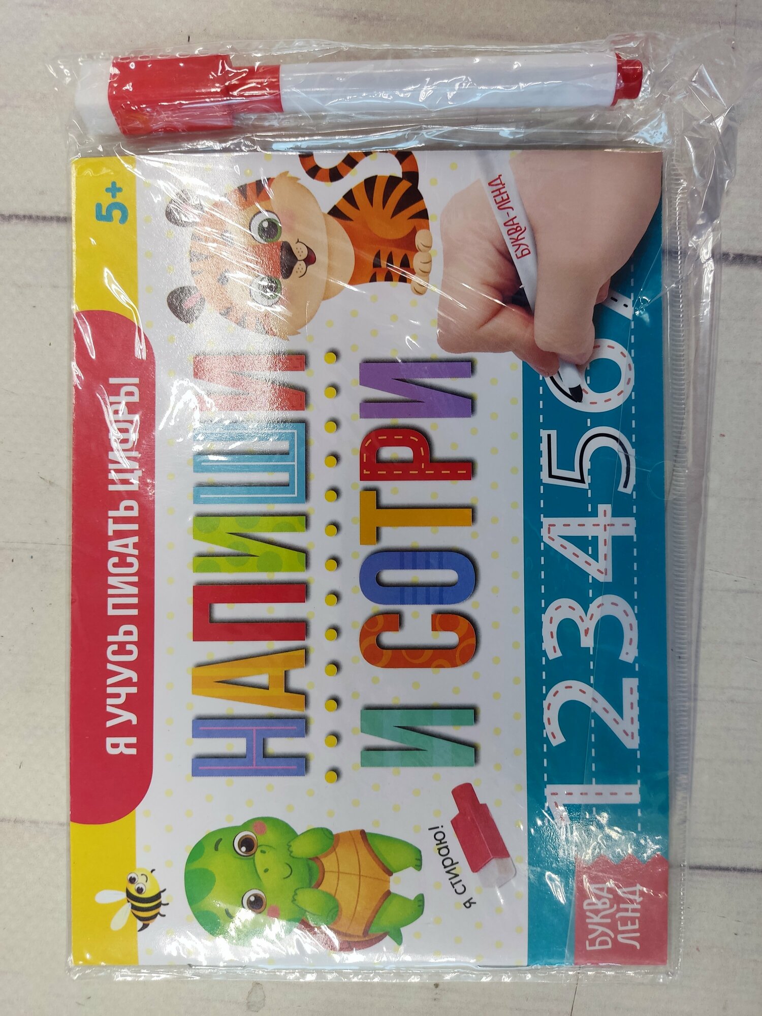 Многоразовая книжка с маркером Пиши-стирай Я учусь писать цифры; Буква-Ленд, 2018