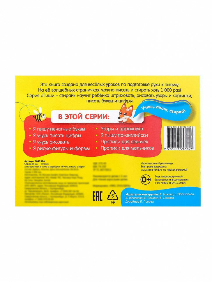 Сервис сравнения цен СкидкаГИД предлагает сравнить цены на товар «Книга: Многоразовая книжка с маркером Пиши-стирай Я учусь писать цифры; Буква-Ленд, 2018»