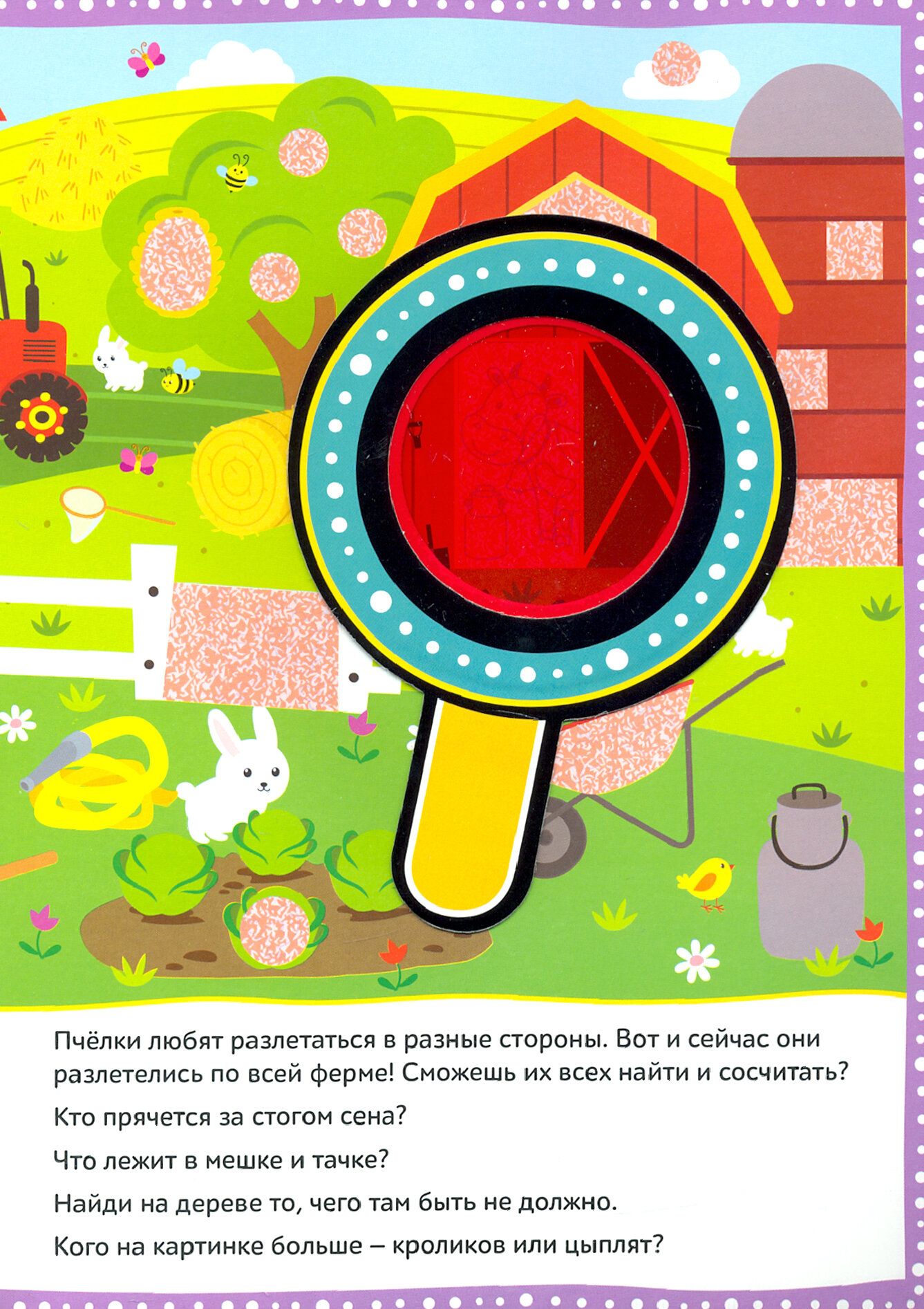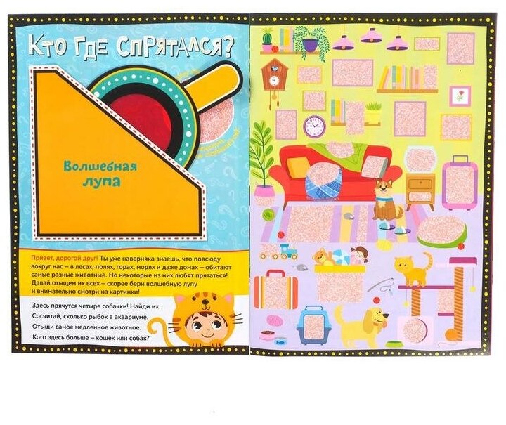 Веселые зверята обожают играть в прятки! Они попрятались на страницах этой книги, но отыскать их очень просто: нужно лишь навести на картинку волшебную лупу.