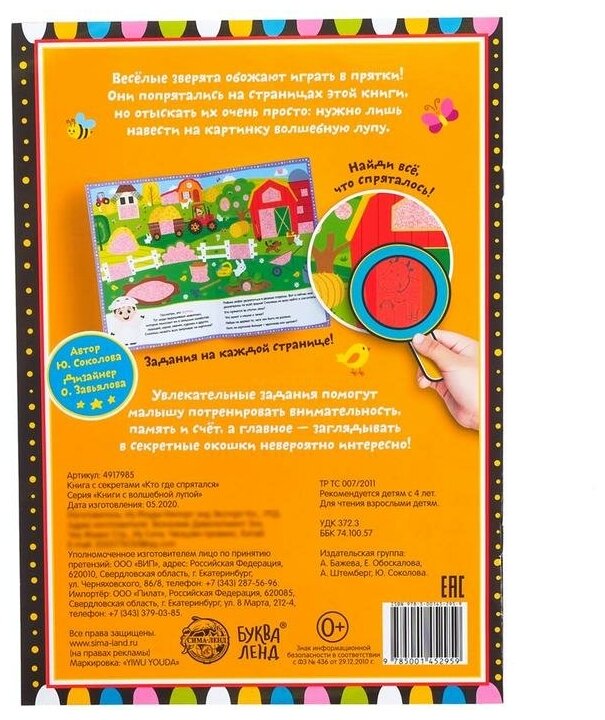 Сервис сравнения цен СкидкаГИД предлагает сравнить цены на товар «Книга: Книга с секретами Кто где спрятался (Соколова Юлия Сергеевна); Буква-Ленд, 2021»