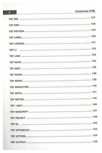 Справочник HTML оказался для меня действительно нужной вещью. Это находка для тех кто уже изучает HTML и им трудно ориентироваться в атрибутах и их использовании в коде. Но книга не может самостоятельно использоваться для изучения HTML. Для меня она в первую очередь играет роль подсказки.
