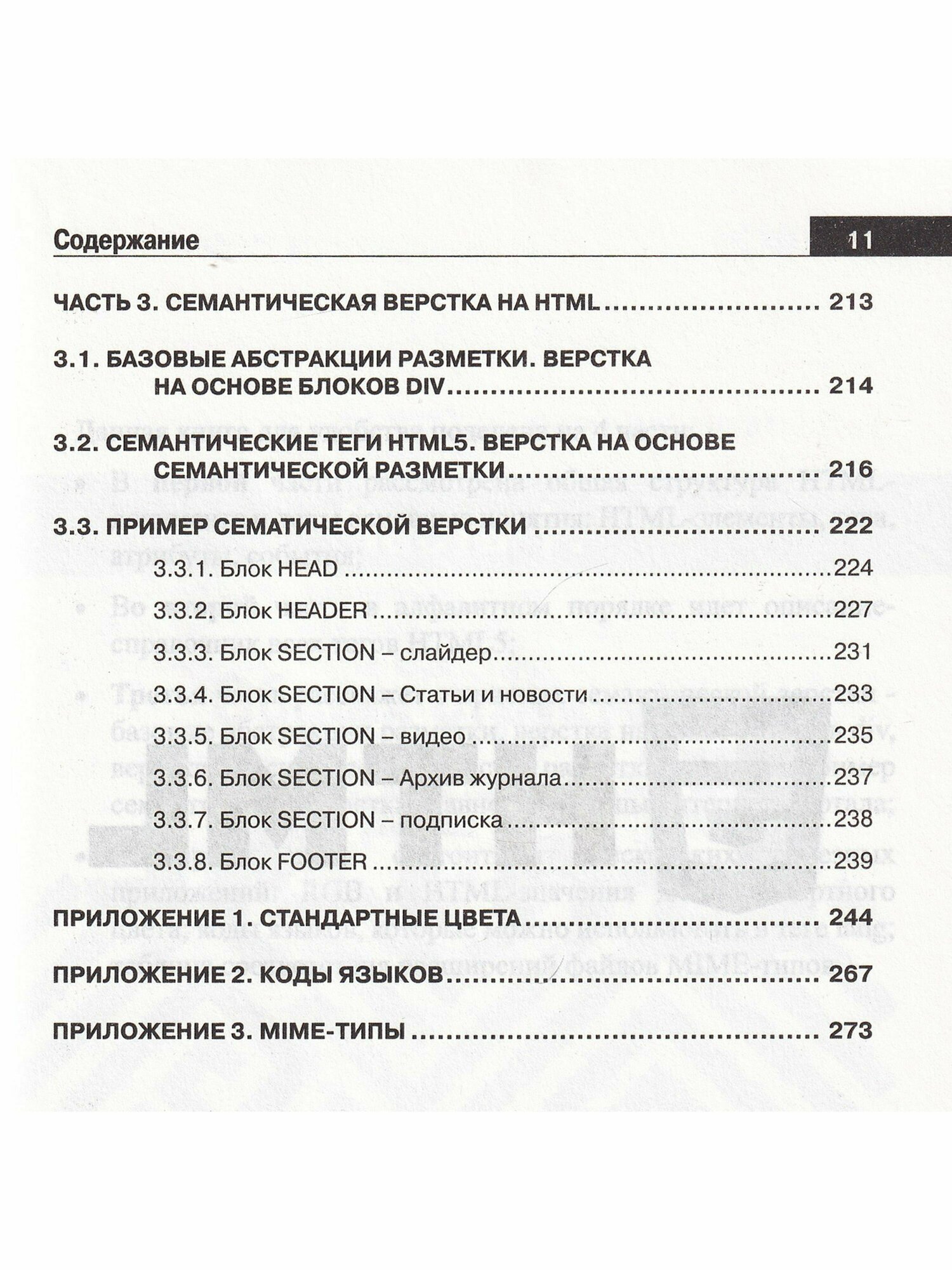 Данный справочник содержит поную информацию об HTML5 в удобной и наглядной форме. Структура справочника позволяет быстро и удобно находить нужную информацию, получать примеры использования тех или иных тегов HTML. Отдельное внимание уделено отраслевым рекомендациям по хорошему стилю использования HTML для верстки веб-сайтов, приведено описание приемов семантической верстки.