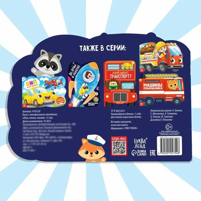 Наклейки многоразовые «Едем, летим, плывём», 12 стр.Серия книжек с наклейками предназначена для самых маленьких читателей. Занятия с такими книгами тренируют мелкую моторику, пространственное мышление и расширяют кругозор.Играйте с ребёнком, читайте историю про разные виды транспорта и изучайте, какие машины ездят по земле, летают по небу и плавают по воде.Наклейки можно использовать по 3‒4 раза.Издание подходит детям старше 1 года.-Вес: 52 г.-Количество в упаковке: 1-Кол-во страниц: 12-Тип индивидуальной упаковки: Без упаковки-Объем упаковки: 0.000-Объем продукта: 0.0694-Объем бокса: 50-Ширина: 17-Высота: 0.2-Габариты товара: 24 см × 17 см × 0,2 см-Материал: Бумага, бумага самоклеящаяся-Набор: Нет-Возраст: От 3 лет, Для детей-Количество страниц: 12-Тематика: Транспорт-Тематика праздника: 23 Февраля-Вид наклейки: Многоразовые, Бумажная-Тип обложки: Мягкий переплёт-Вид: Альбомы