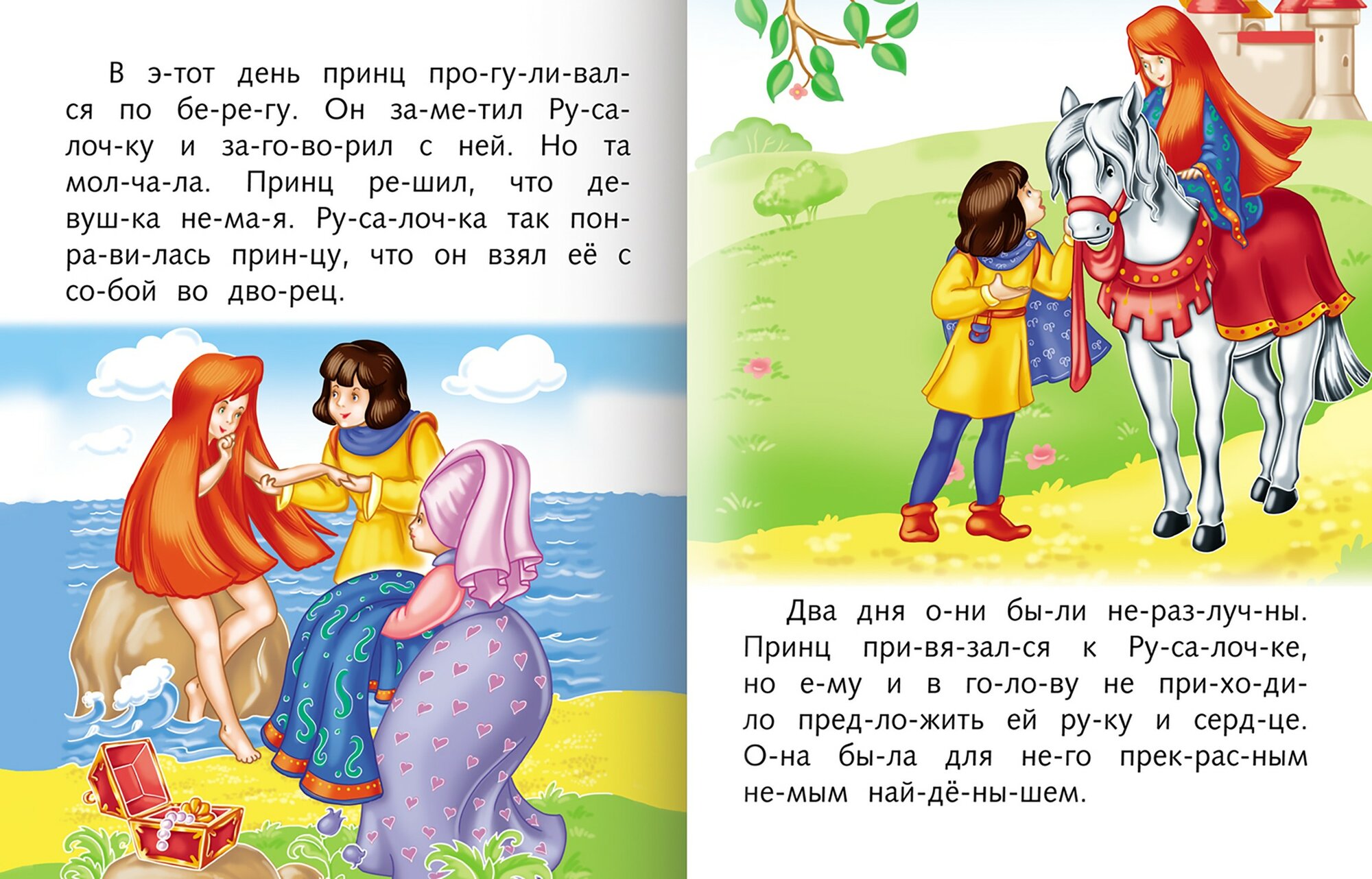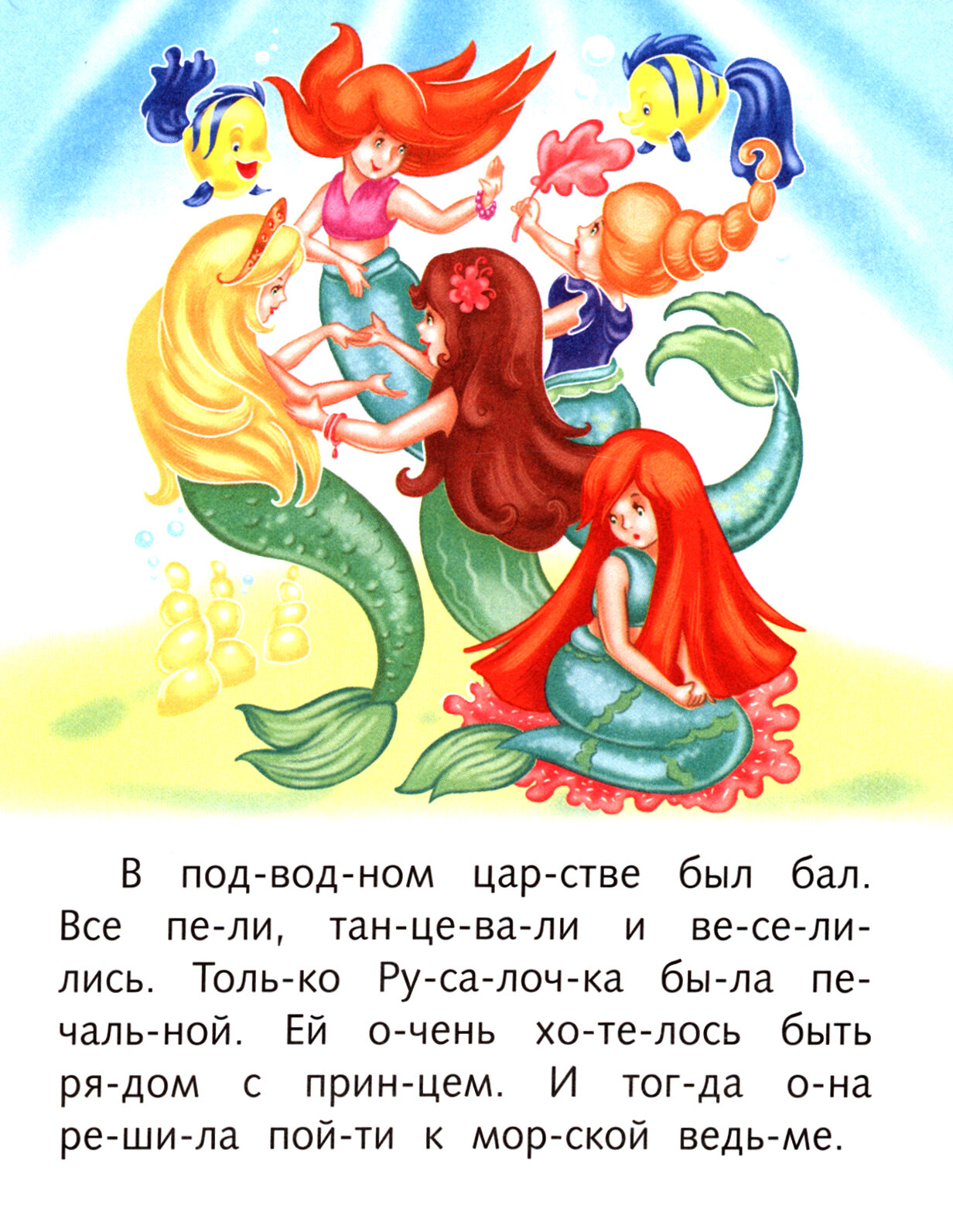 аннотация к книге русалочка"после того как ребёнок научится складывать буквы в слоги, а слоги - в слова, начинающему читателю понадобятся специальные книги для отработки навыков чтения. перед вами сказка "русалочка" с большими красочными иллюстрациями, адаптированная для чтения по слогам. прежде чем начать читать сказку, попросите ребёнка выполнить несколько тренировочных упражнений. они подготовят его к чтению простых слов и предложений. в конце книги малыша ждут увлекательные игровые задания. ваши занятия станут ещё эффективнее, если вы подойдёте к ним творчески. придумайте и разыграйте вместе с малышом сценки с участием героев сказки. предложите ребёнку описать внешность и характер сказочных персонажей. сочините новое окончание сказки. для детей дошкольного возраста. для чтения взрослыми детям.