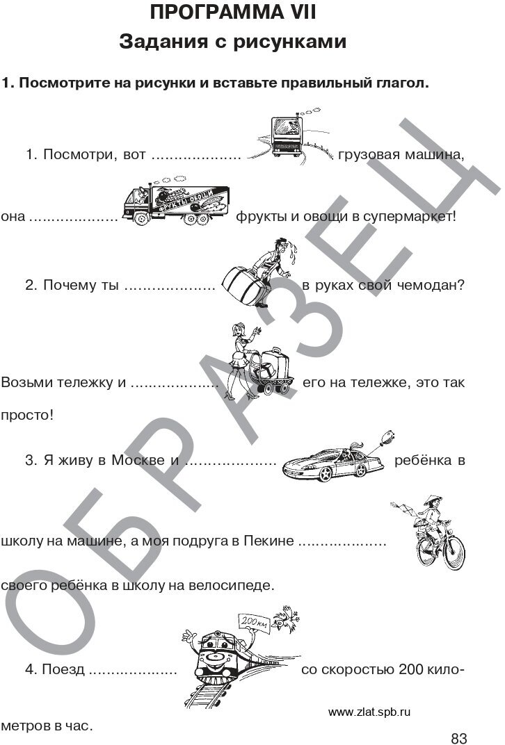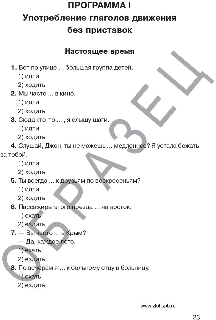 Сборник упражнений по грамматической теме «Глаголы движения» дляиностранных учащихся, владеющих русским языком в объеме Базового уровня (ТБУ). Отдельные материалы пособия могут также использоваться в группах учащихся I уровня (ТРКИ1). Небольшой объем книги позволяет как включать ее в языковую программу, рассчитанную на долгий период, так и использовать ее на краткосрочных курсах русского языка. Ко всем упражнениям имеются ключи. Цветные карты и схемы, а также переводы грамматических таблиц записаны на CD.