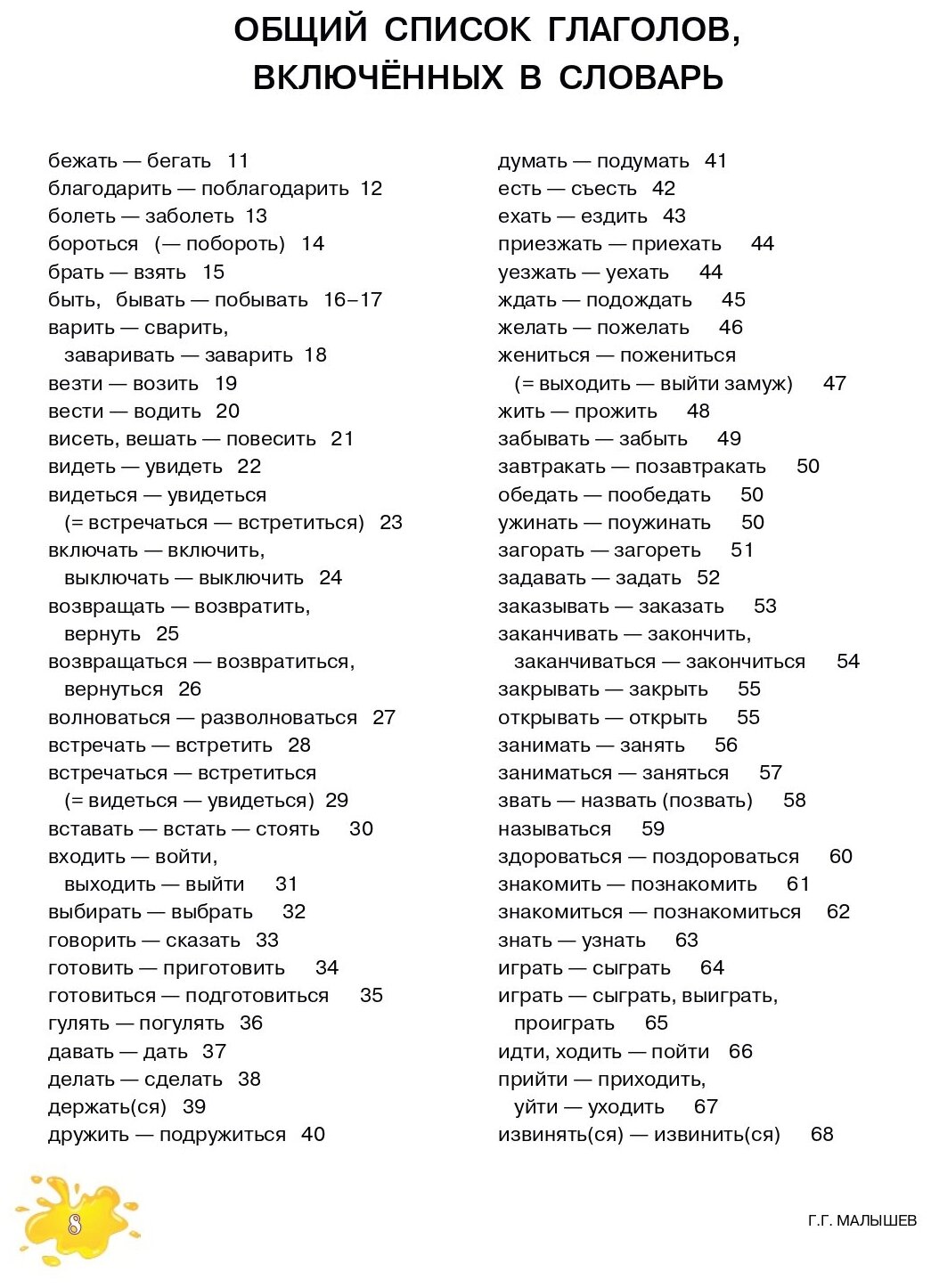 Данное пособие по русскому языку как иностранному представляет собой компактный словарь-справочник наиболее употребительных русских глаголов в картинках и таблицах. Пособие включает в себя 176 наиболее употребительных русских глаголов, а также сведения об управлении каждого глагола и образовании его форм. Эти сведения представлены в виде лексически наполненных синтаксических моделей, или речевых образцов. Ситуативно-значимое содержание образцов раскрывается через наглядно представленную ситуативную картинку, что обеспечивает более лёгкое, а главное, более эффективное восприятие учебных единиц. Тем же наглядным способом семантизируются и примеры использования усваиваемых глаголов в речи. Пособие предназначено как для аудиторной, так и для самостоятельной работы и может быть использовано всеми категориями учащихся, в первую очередь, на начальном этапе овладения языком (А1, А2).