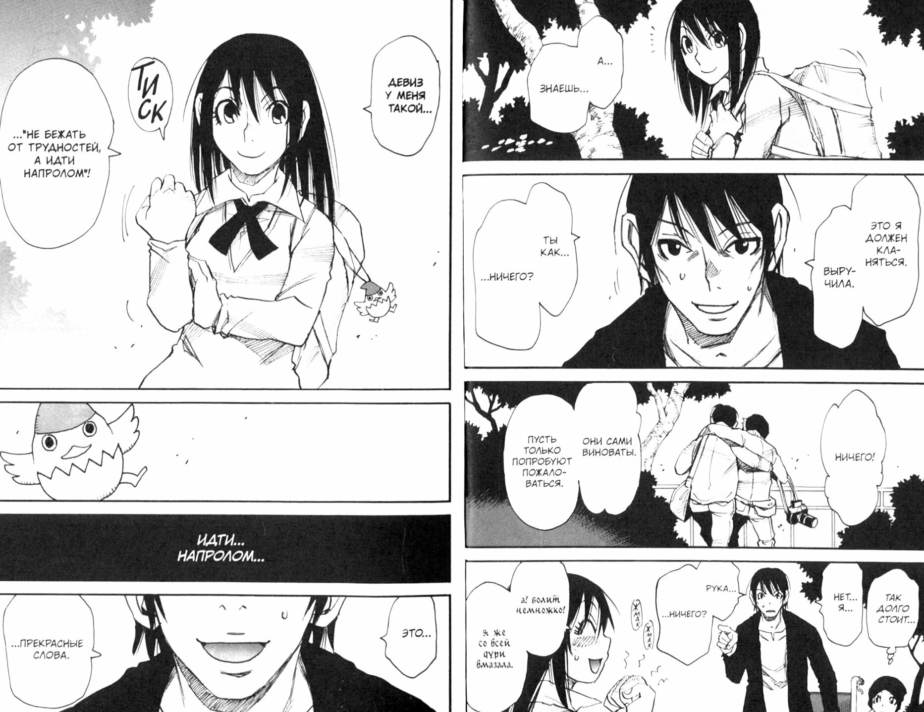 Уже седьмой том манги "Город, в котором меня нет" Кэи Самбэ. Автор развивает историю весьма органично, не смотря на перемещения во времени. Персонажи неплохо прописанны, но большая часть из них вызывает раздражение. Приглянулись лишь Сатору с Яширо, крайне печально, что на этих двух героях и держится весь сюжет манги. Самбэ действительно умеет заинтриговать. Рисовка мне совершенно не нравится, она очень грубая и не детализированная. К прочтению, рекомендую на свой страх и риск.