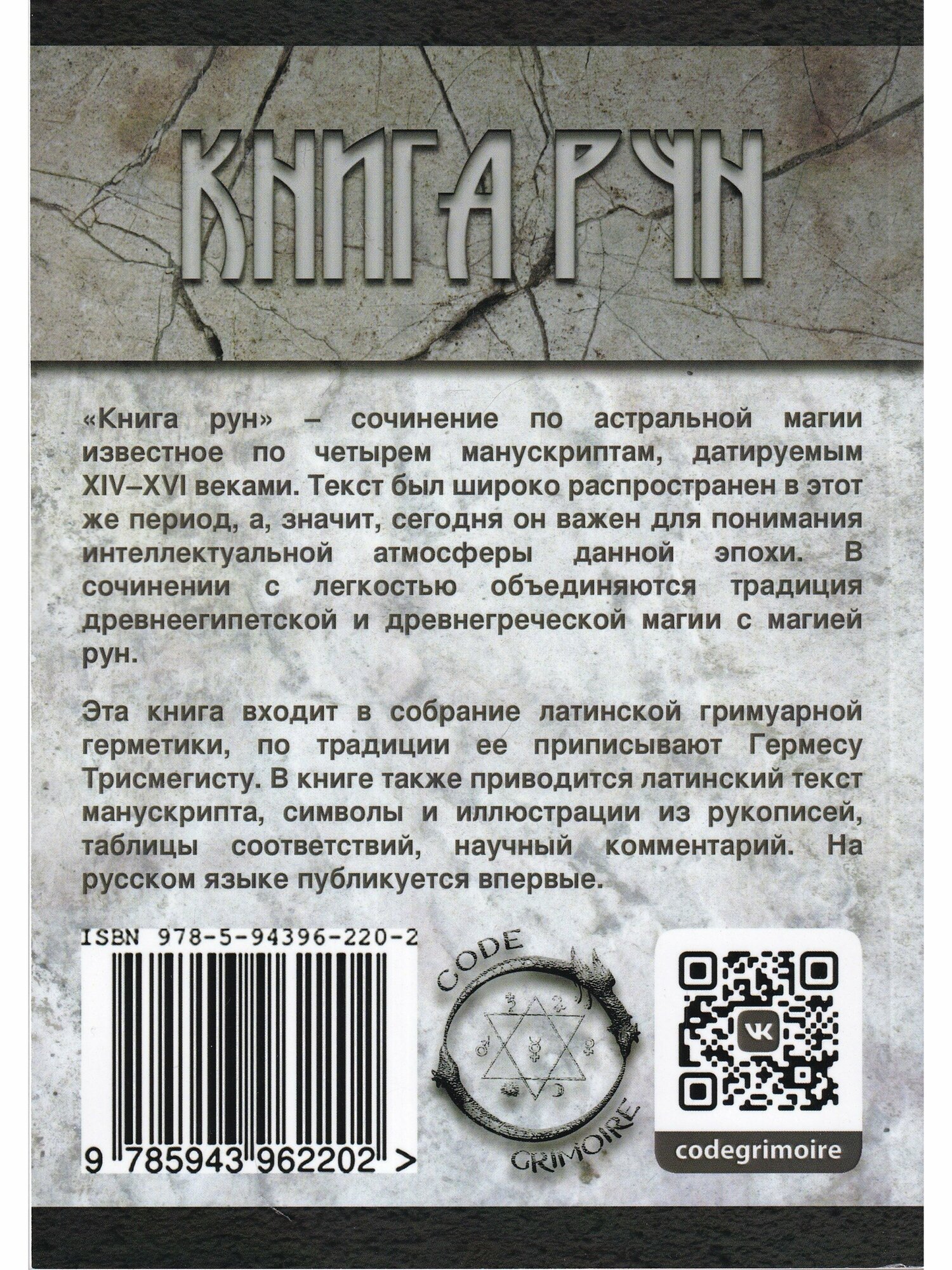 На сегодняшний день товар «Книга: Liber Runarum Книга рун (Кузьмин Е. (пер.)); Академия исследования культуры, 2020» можно купить с кешбеком в 1 магазине: Читай-город
