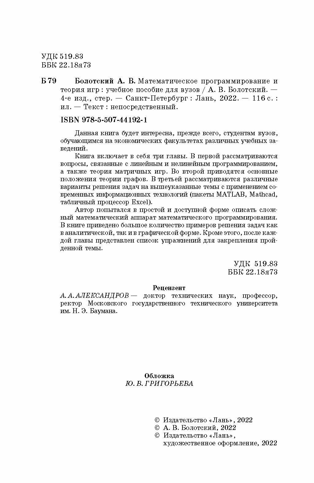 Математическое программирование и теория игр Учебное Пособие (Болотский Александр Владимирович); Лань, 2022