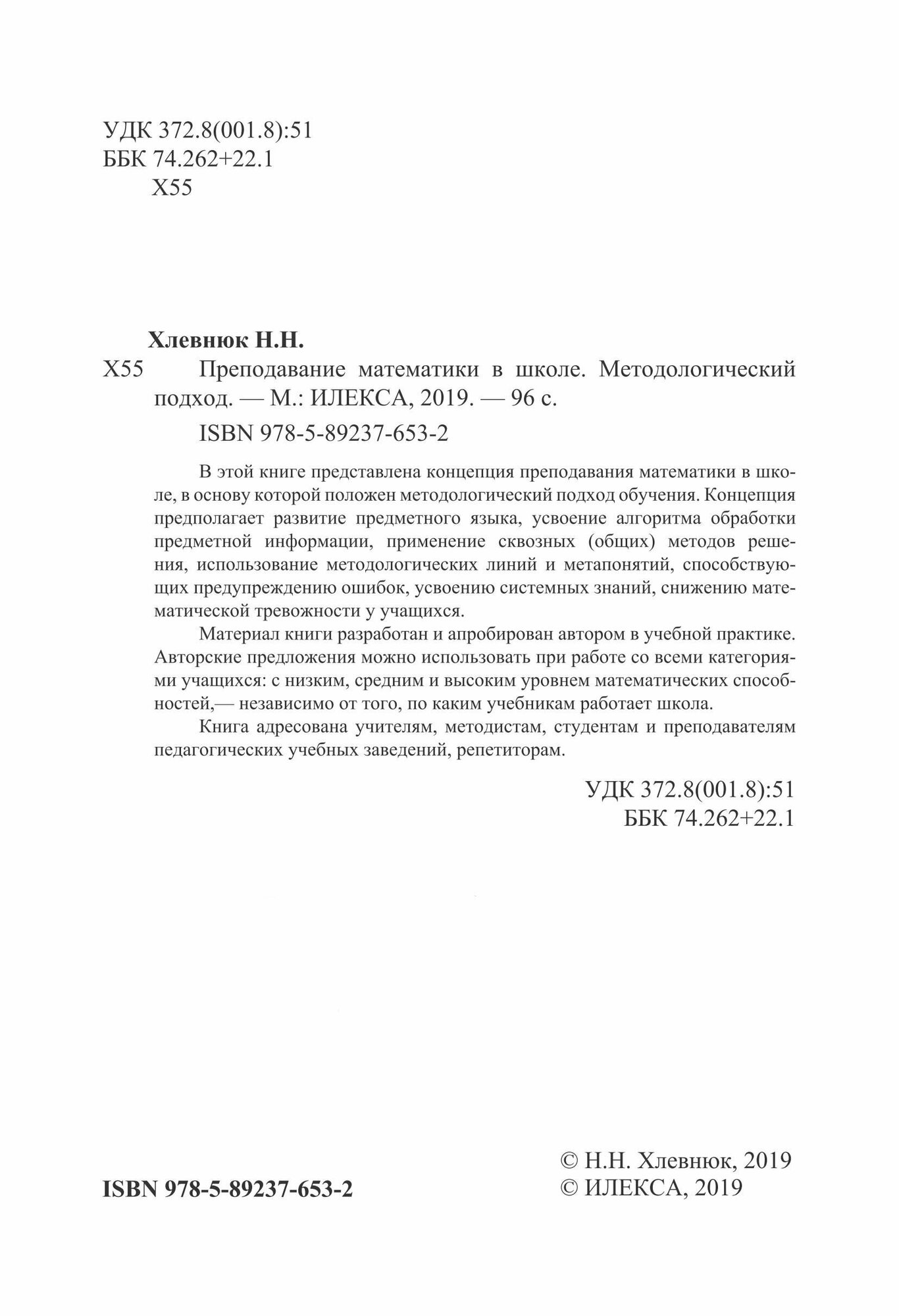Преподавание математики в школе Методологический подход (Наталья Николаевна Хлевнюк); Илекса, 2019