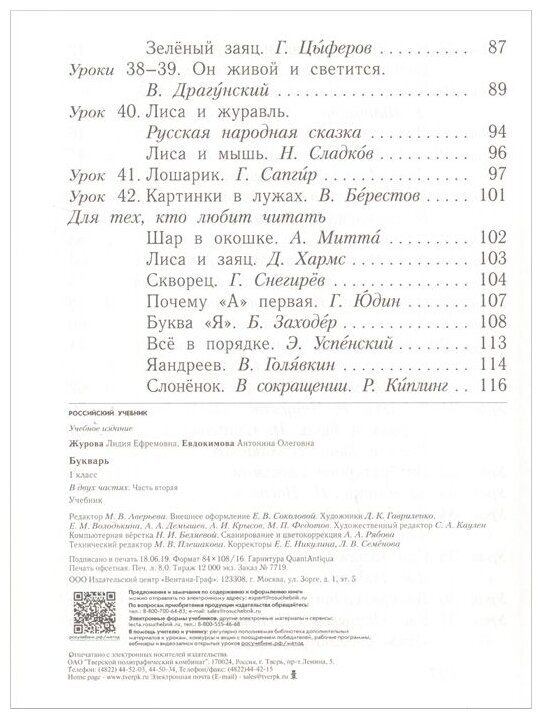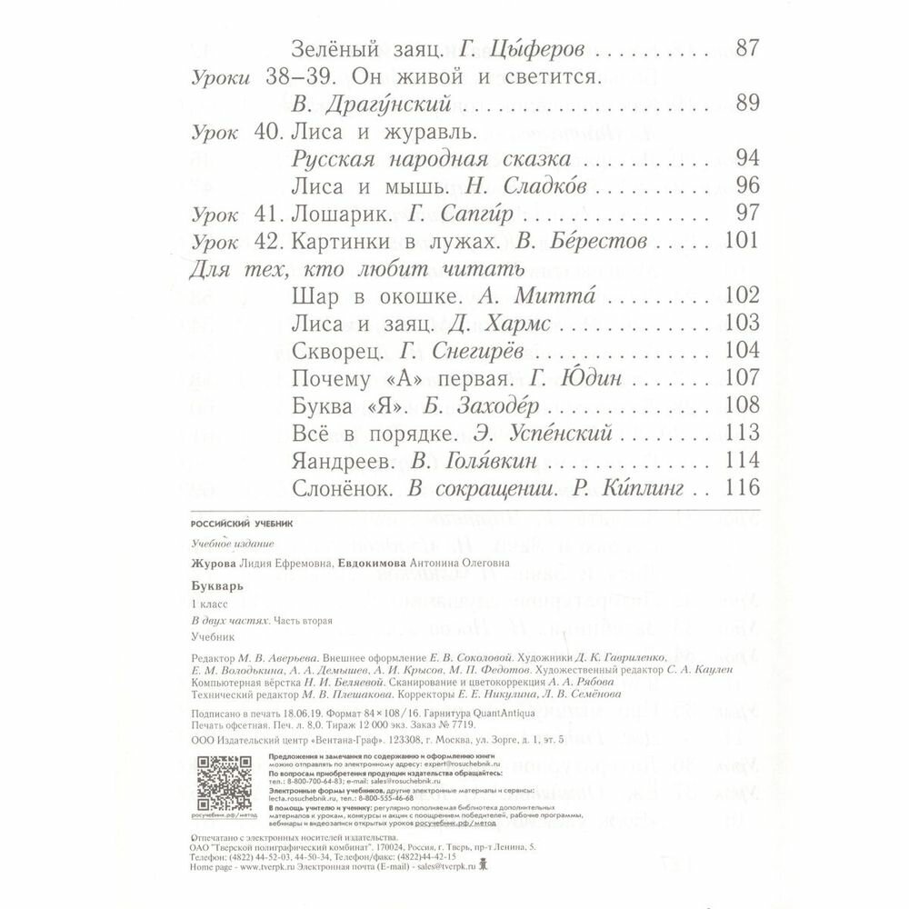 Букварь 1 класс В 2-х частях Часть 2 Учебник для общеобразовательных организаций (Евдокимова Антонина Олеговна; Журова Лидия Ефремовна); Дрофа, 2020