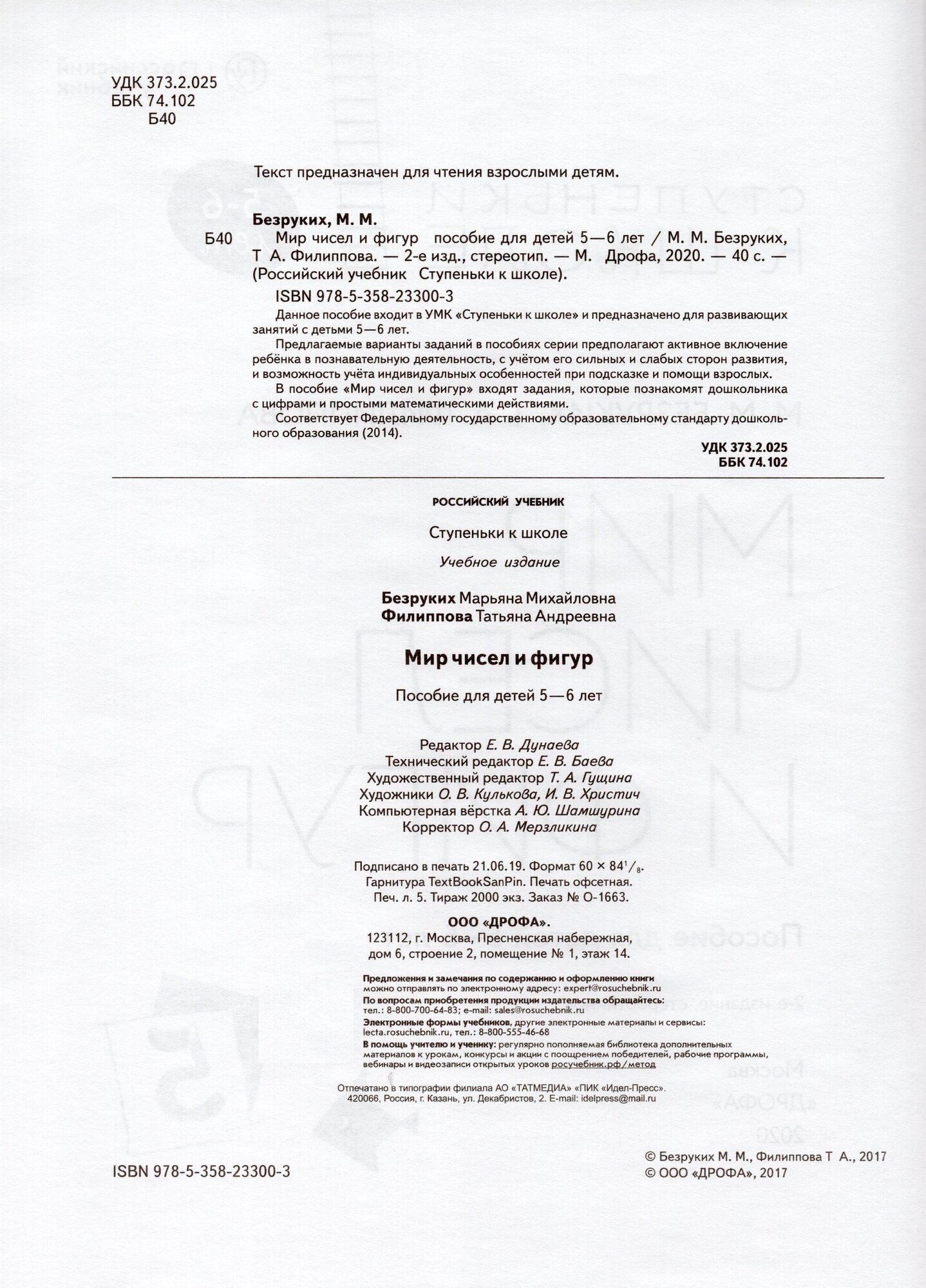 Мир чисел и фигур Пособие для детей 5-6 лет (Безруких Марьяна Михайловна, Филиппова Татьяна Андреевна); Дрофа, 2022