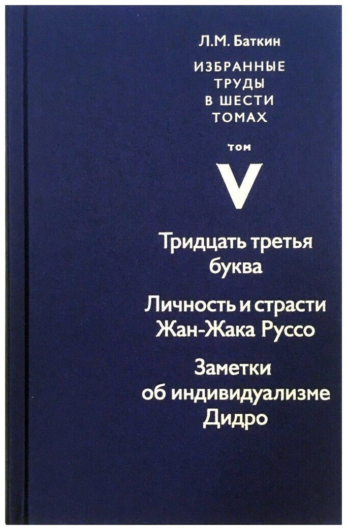 На сегодняшний день товар «Книга: Избранные труды в шести томах Том V Тридцать третья буква Личность и страсти Жан-Жака Руссо Заметки об индивидуализме Дидро (Леонид Михайлович Баткин); Новый хронограф, 2020» можно купить с кешбеком в 3 магазинах: book24, Читай-город, Буквоед