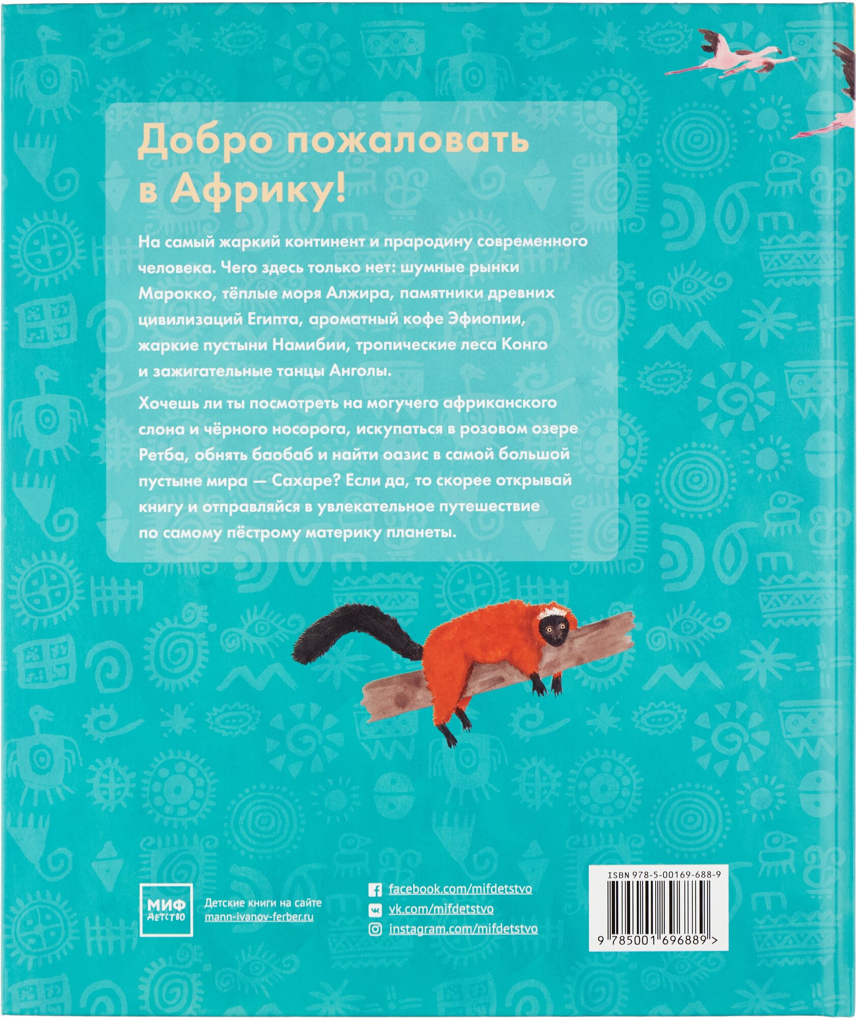 Откройте книгу и отправляйтесь в путешествие по самому жаркому континенту. Чего здесь только нет: шумные рынки Марокко, тёплые моря Алжира, памятники древних цивилизаций Египта, ароматный кофе Эфиопии, жаркие пустыни Намибии, тропические леса Конго и зажигательные танцы Анголы.