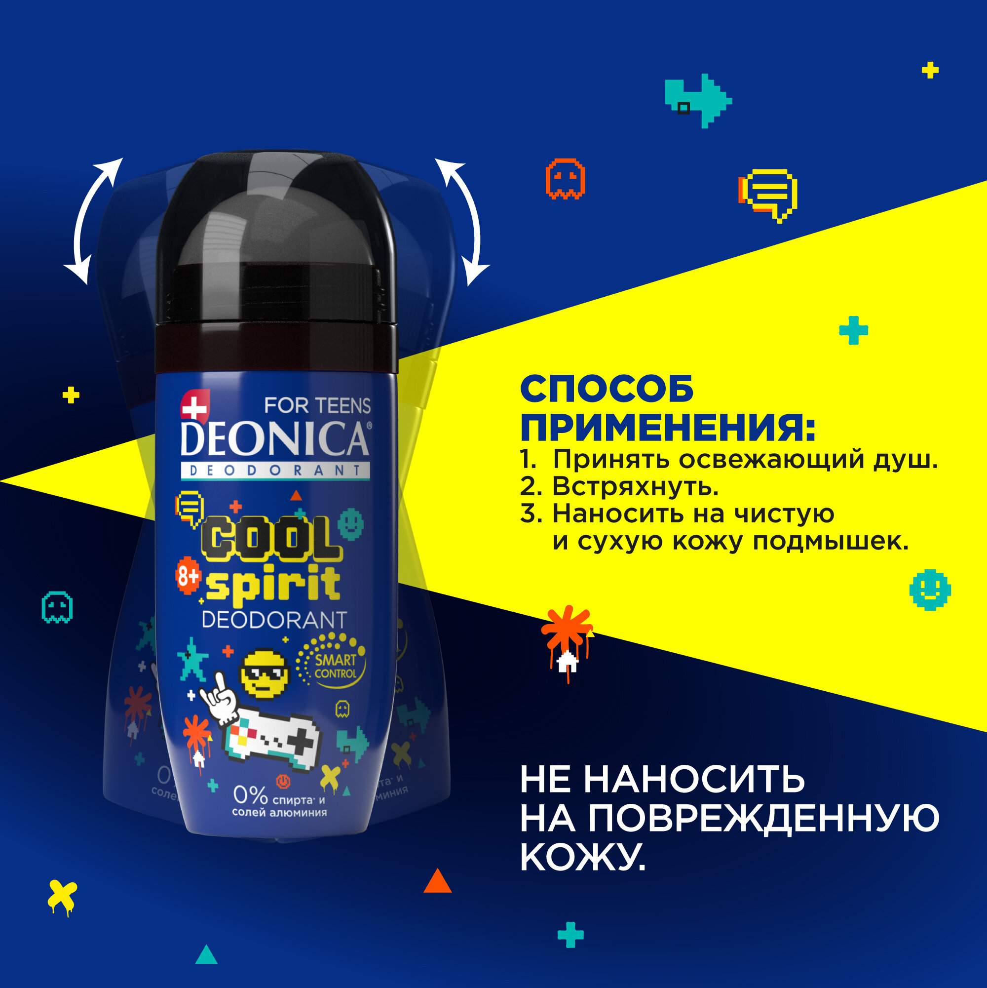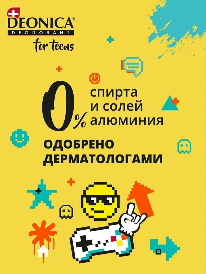 Детский шариковый дезодорант Деоника Cool Spirit для детей от 8 лет и подростков. Специальная гипоаллергенная формула антиперспиранта Deonica for Teens с натуральным абсорбентом - микронизированным бамбуком, идеально подходит для нежной кожи подмышек. Дезодорант Деоника Cool Spirit разработан специально для мальчиков от 8 лет. Антиперспирант не оставляет белых следов на одежде, также обеспечивает защиту и комфорт на 24 часа. Дезодорант Deonica for Teens не содержит солей алюминия, спирта парабенов и фталатов. Рецептуры всех антиперспирантов Deonica разработаны в Швейцарии и сочетают в себе натуральные и безопасные активные компоненты, а также высокоэффективную защиту. Высокая эффективность дезодорантов подтверждена клиническими испытаниями и потребительскими тестами в европейских лабораториях, одобрен дерматологами.