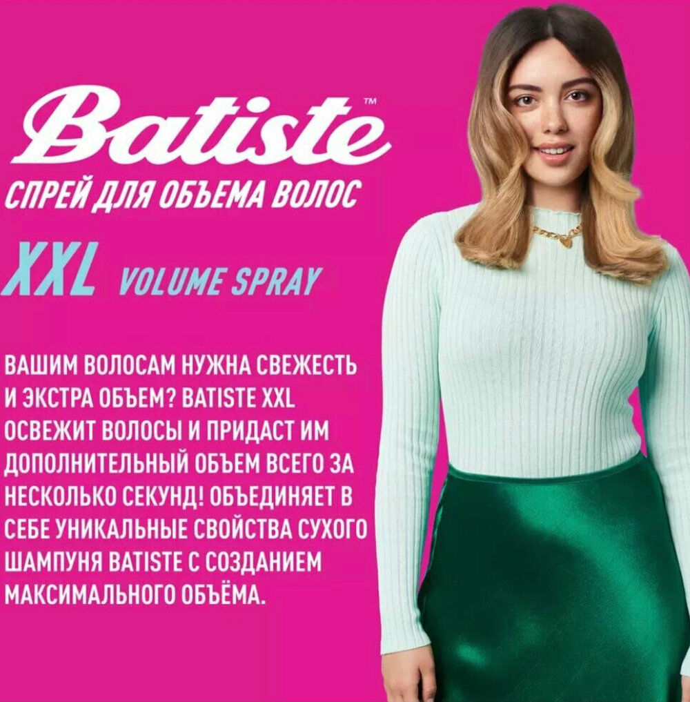Сухой шампунь устраняет жирность корней и придает тусклым волосам необходимый блеск без использования воды. Мы часто не имеем возможности воспользоваться привычной процедурой мытья волос. Batiste предлагает простое, удобное и быстрое решение проблемы. После применения волосы обретают утраченные объем, силу и свежесть.