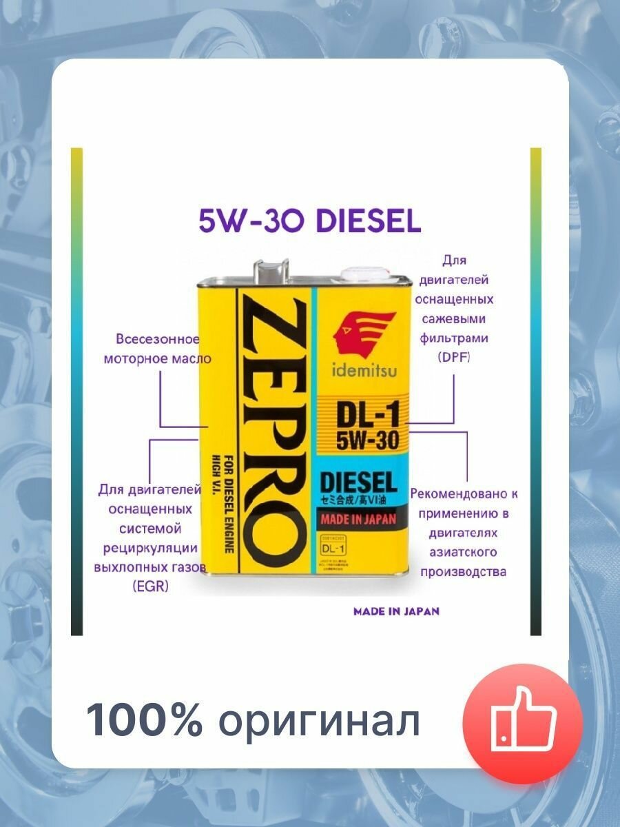 ![Моторное масло IDEMITSU Zepro Diesel DL-1 5W-30 1л. полусинтетическое [2156001]](https://cdn.xn--80agbcqdjc3d.xn--p1ai/images/prodacts/290/98665/98665901_motornoe-maslo-idemitsu-zepro-diesel-dl-1-5w-30-1l-polusinteticheskoe-2156001.jpg)