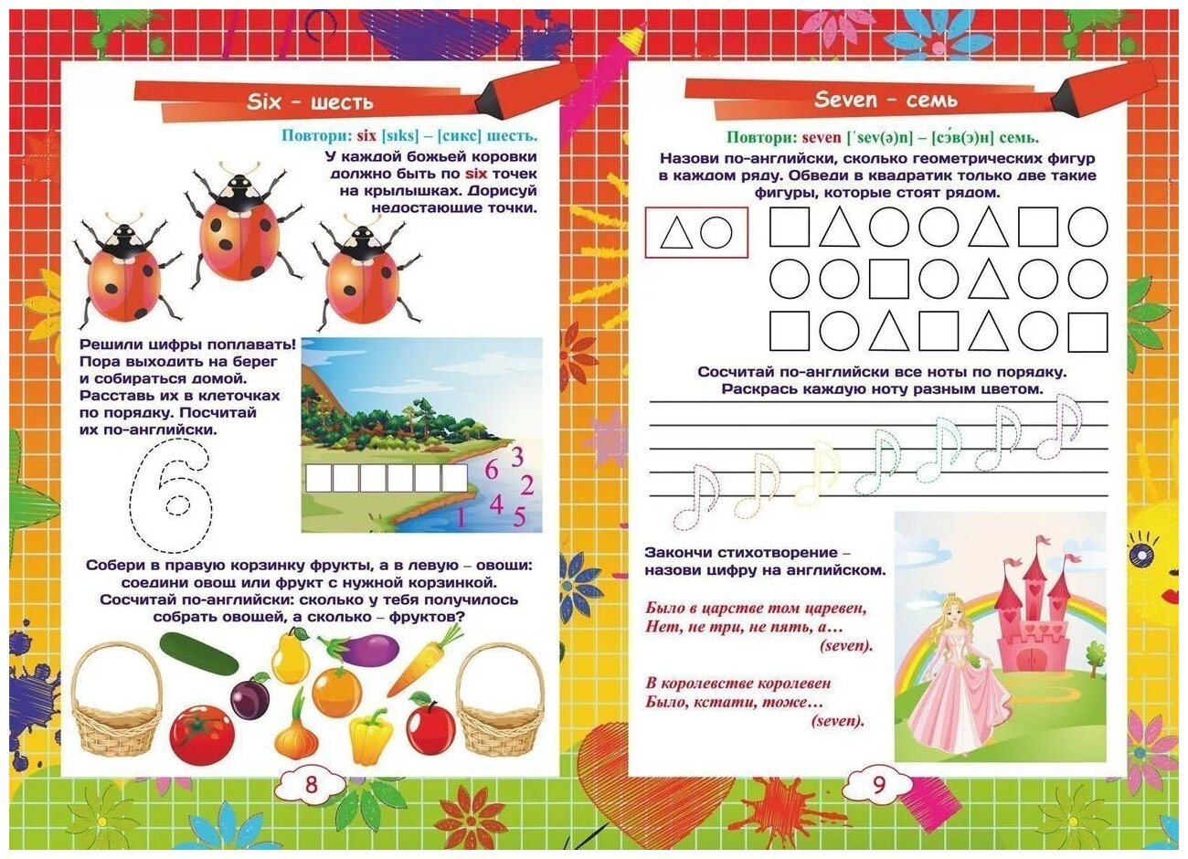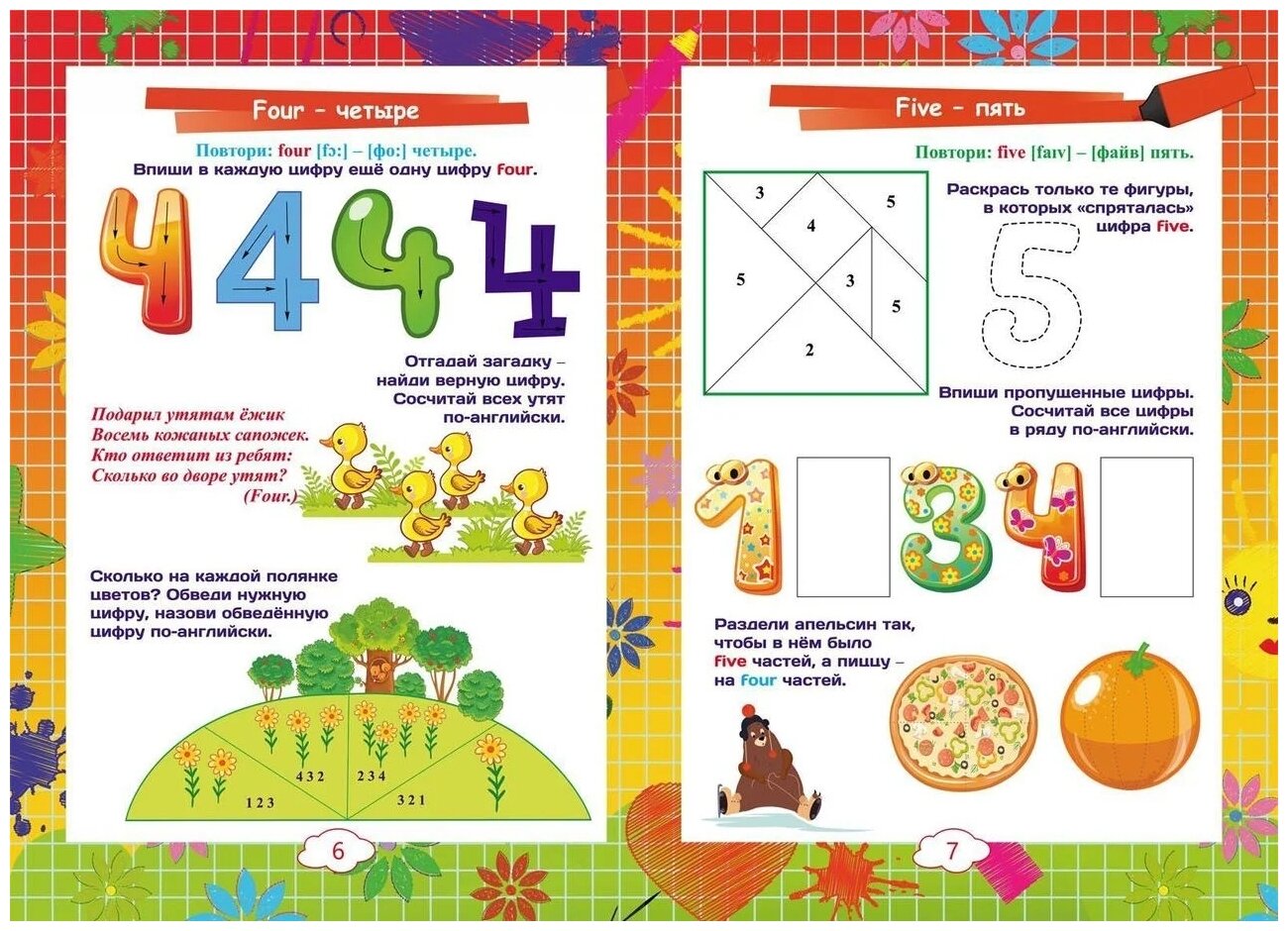 Каждая страница тренажёра - это занимательный мир английских названий чисел, счёта, математики, где ребёнок с удовольствием: