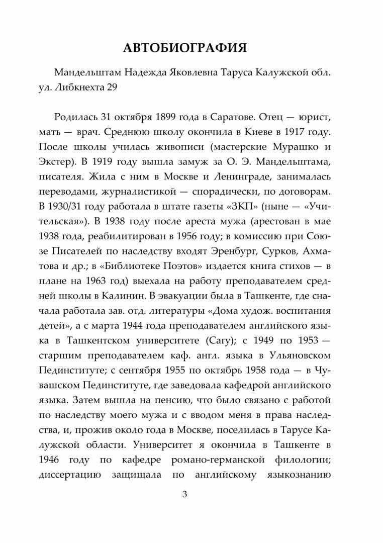 Потрясающие по своей внутренней мощи и уровню трагичности воспоминания жены и верного друга великого русского поэта Осипа Эмильевича Мандельштама - Надежды Яковлевны Мандельштам. Благодаря ее героизму до нас дошли не только многие стихи поэта, но и наиболее достоверные и при этом ярко и талантливо написанные воспоминания о последних годах его жизни. Однозначные рекомендации.