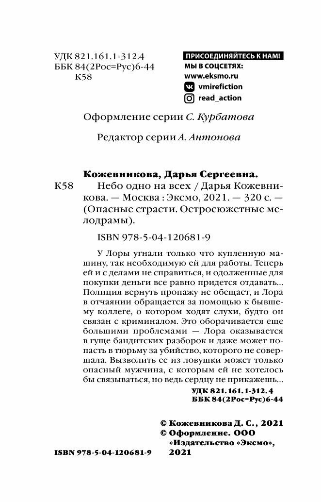 Книга: Небо одно на всех (Дарья Сергеевна Кожевникова); Эксмо, 2021