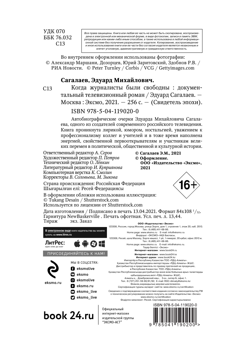 Когда журналисты были свободны: Документальный телевизионный роман (Эдуард Сагалаев); Эксмо, Редакция 1, 2021