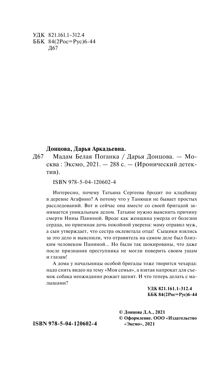 Книга: Мадам Белая Поганка (Дарья Донцова); Эксмо, Редакция 1, 2021