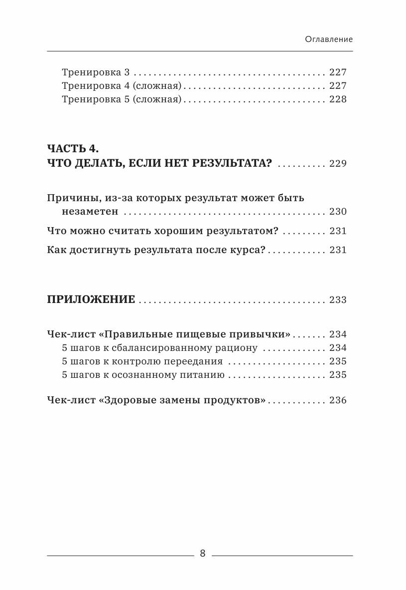 Книга является замечатеной инструкцией как начать и продолжить делать упражнения. Давно следила за Ольгой, но никак не могла начать, для меня сложно самой систематизировать информацию. В книге очень подробно и удобно все описано и расположено. Очень радует что есть разворот с обобщенной информацией по упражнениям на каждую неделю, т.е. при выполнении упражнений не надо листать книгу. Очень рекомендую