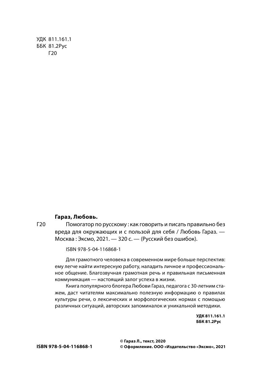 Помогатор по русскому: как говорить и писать правильно без вреда для окружающих и с пользой для себя (Любовь Гараз); Эксмо, 2021