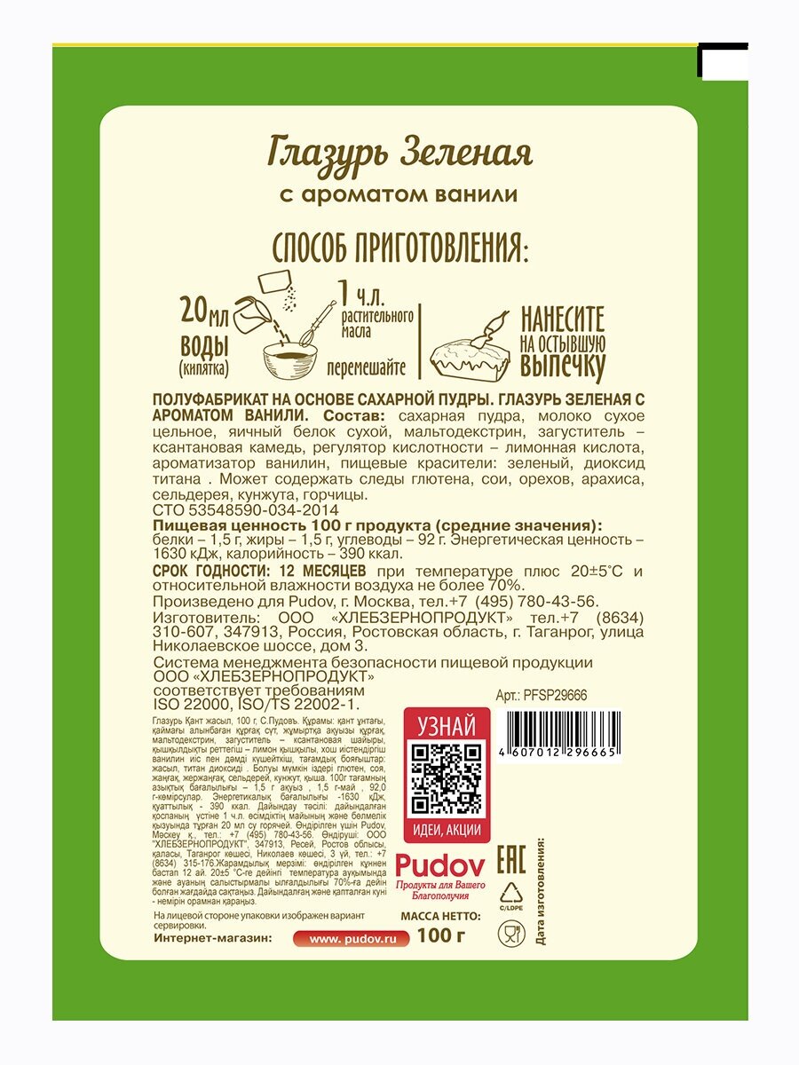 Глазурь С.Пудовъ сахарная зеленая 100г