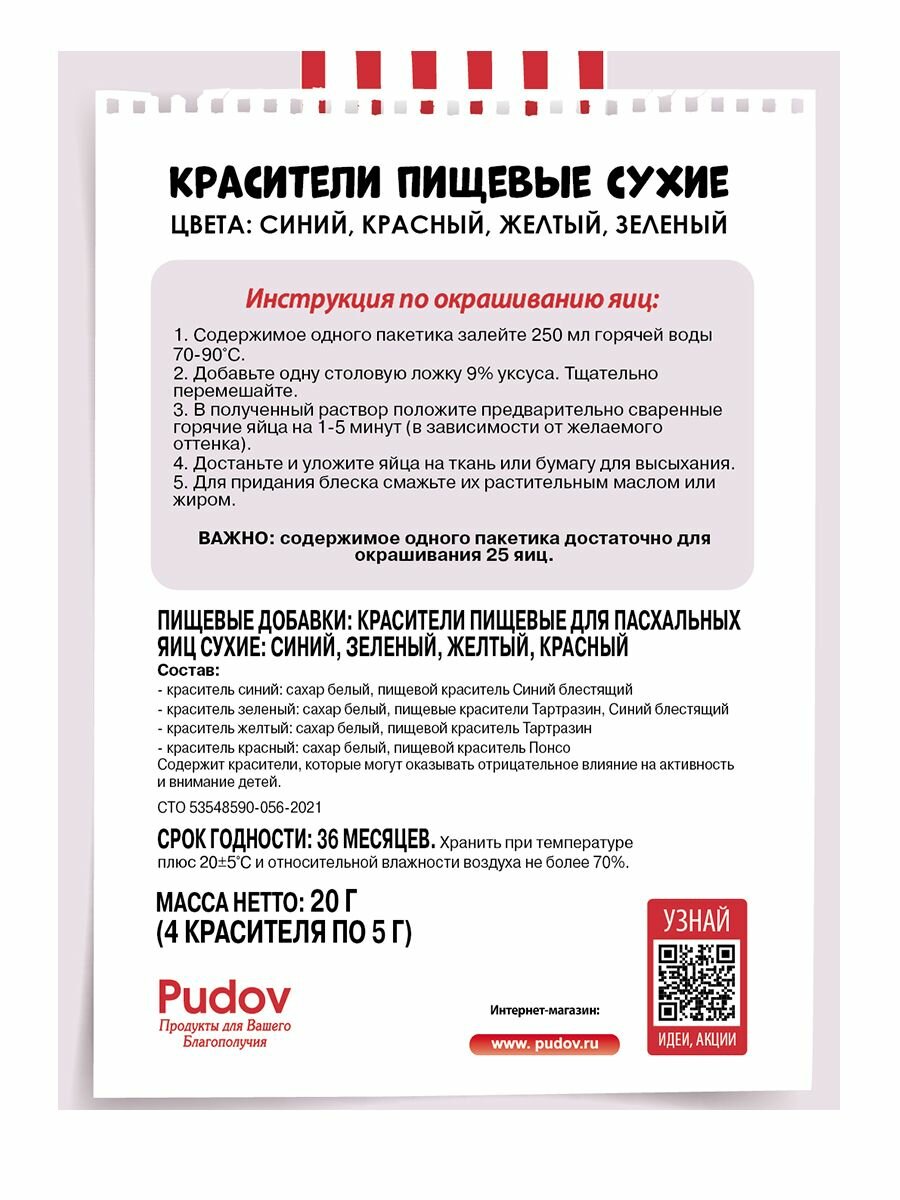Красители пищевые С.Пудовъ для яиц 20г