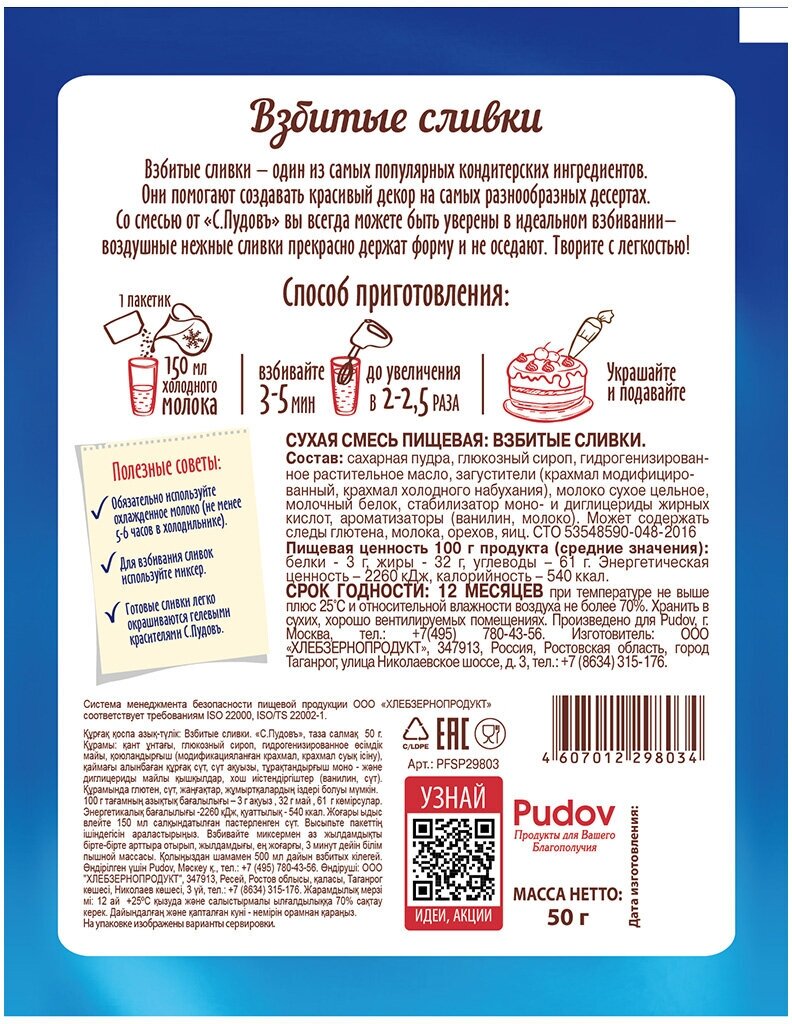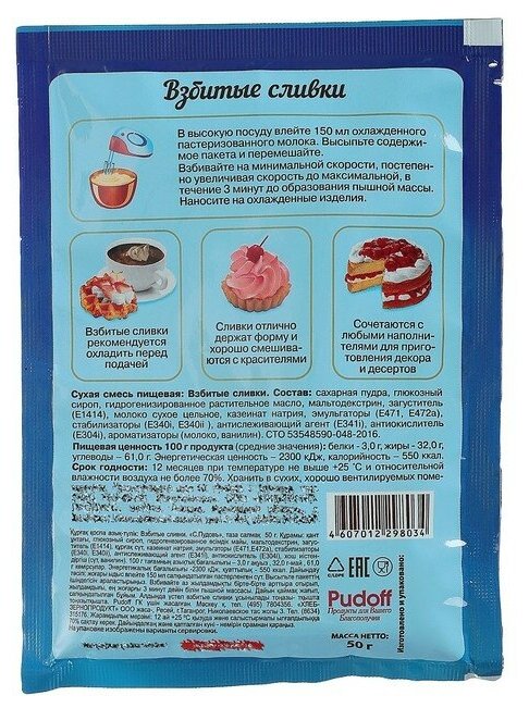 Сервис сравнения цен СкидкаГИД предлагает сравнить цены на товар «Готовая смесь С.Пудовъ Взбитые сливки 50г»
